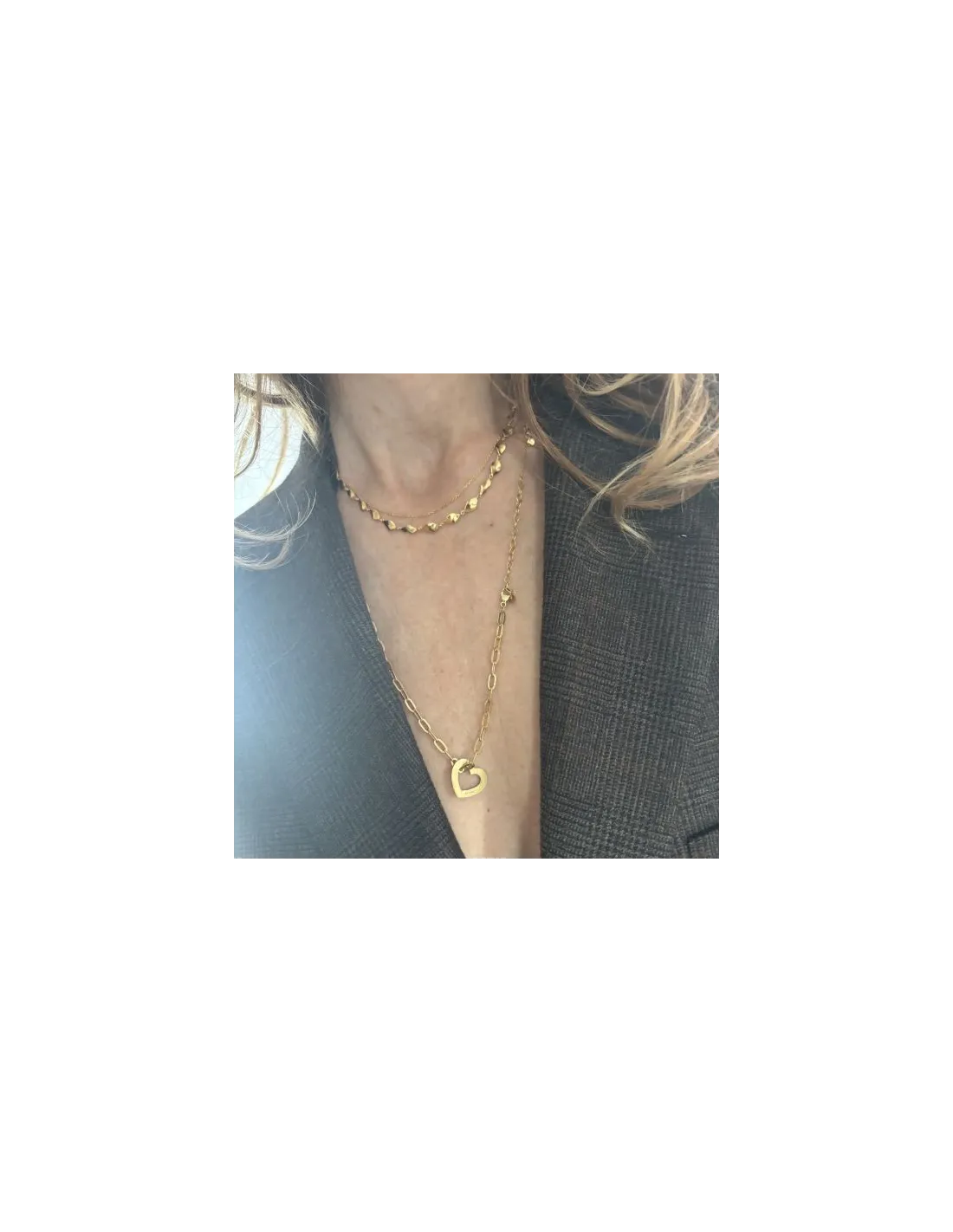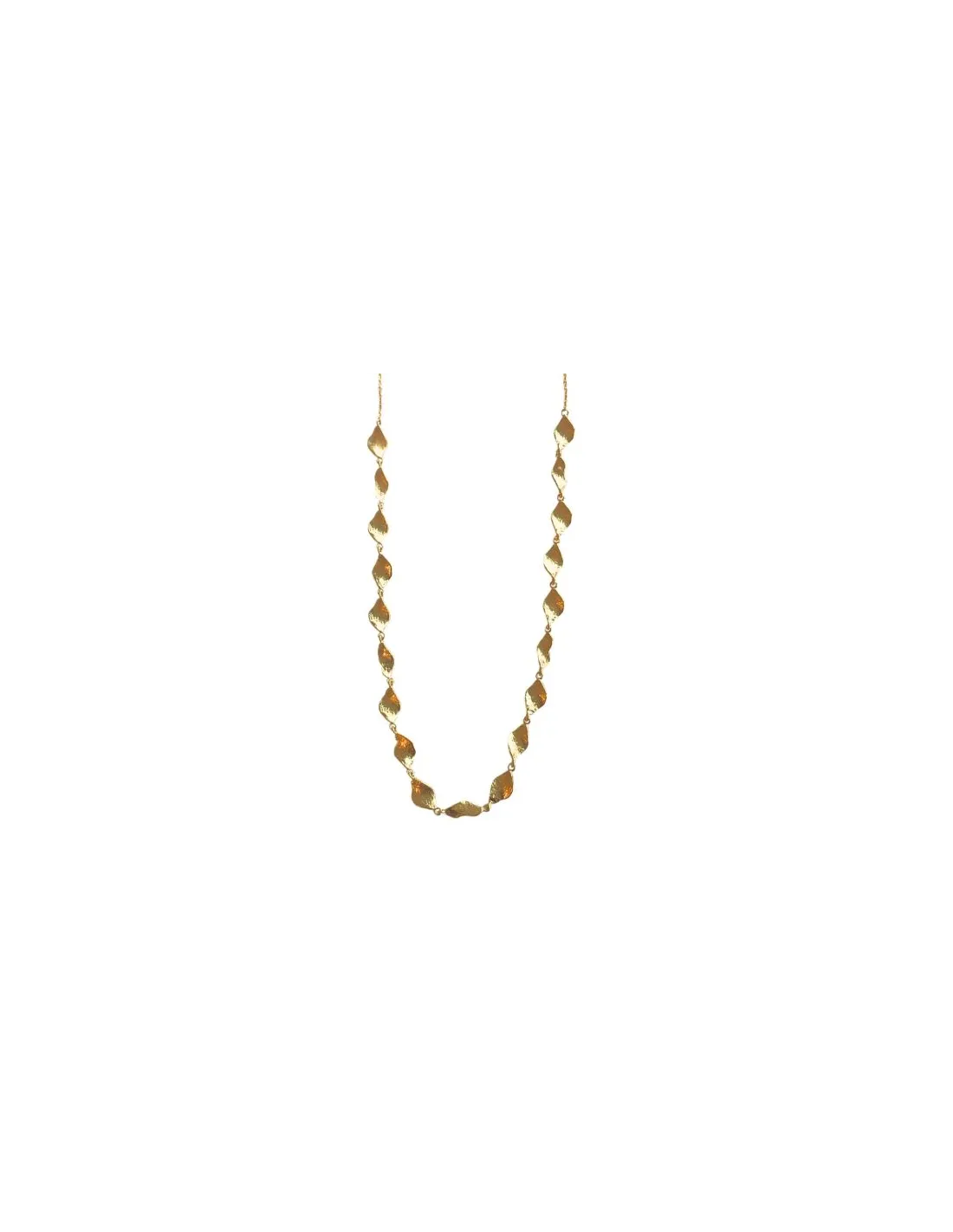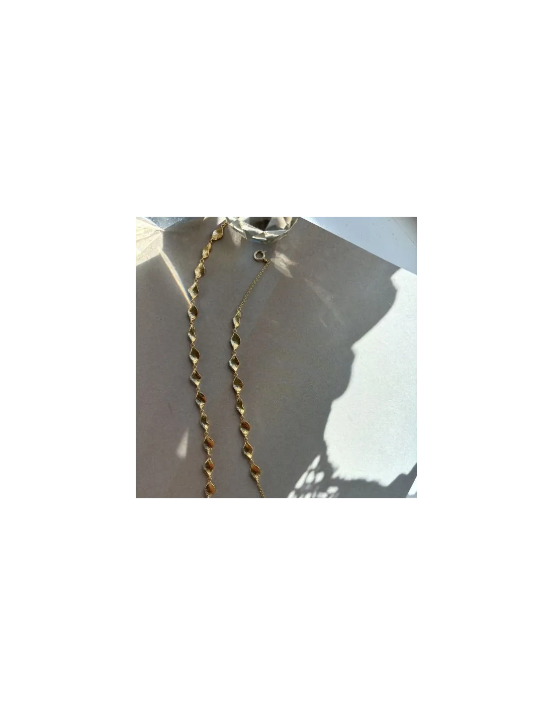 Sæsonens statement piece! Uimodståelig guldbelagt halskæde med små led med en banket overflade. Inspireret af Stines kærlighedsø, Bornholm, omfavner de sammensatte led, som er formet efter øen, din hals som små lysglimt. Et smykke med kant og elegance perfekt til både hverdag og fest.