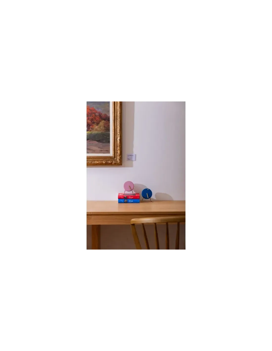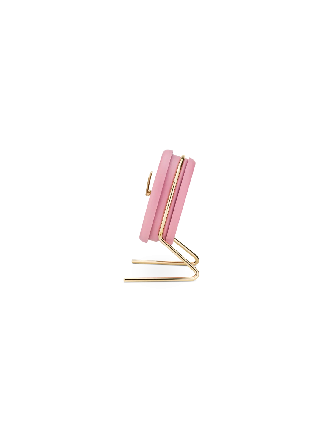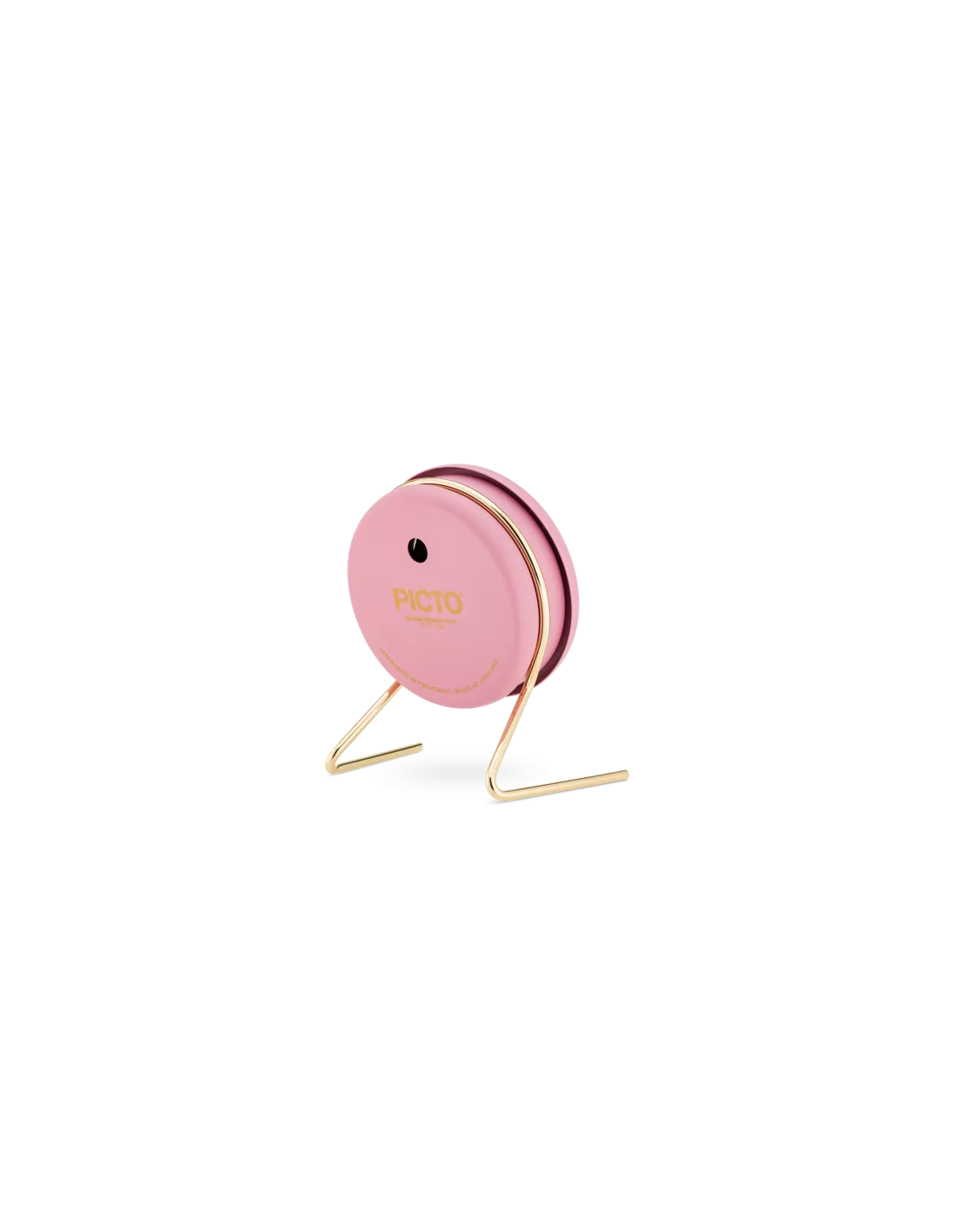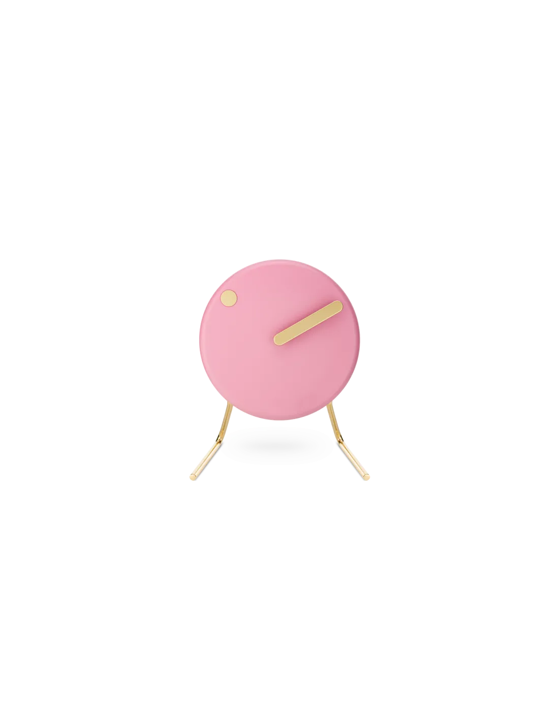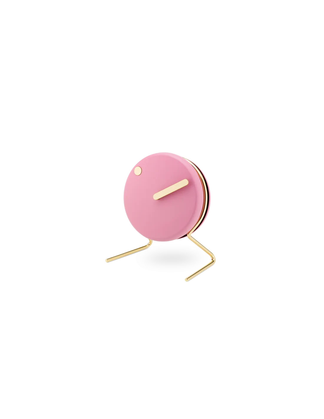 PICTO’s bordur i farven Flamingo Pink er en genskabelse af det ikoniske design fra 1984. Uret er fremstillet af aluminium og rustfrit stål og er udstyret med et præcist Seiko SKP-urværk. Med aftagelige ben kan det anvendes både som bordur og vægur, hvilket gør det alsidigt i indretningen. Det minimalistiske design, hvor timen angives med en prik på den roterende urskive, mens minutterne vises med en konventionel viser, udfordrer den traditionelle opfattelse af tidtagning. Dette gør PICTO til et unikt og tidløst stykke design, der appellerer til dem, der ønsker at sætte deres egen dagsorden og værdsætter minimalismens kunst.