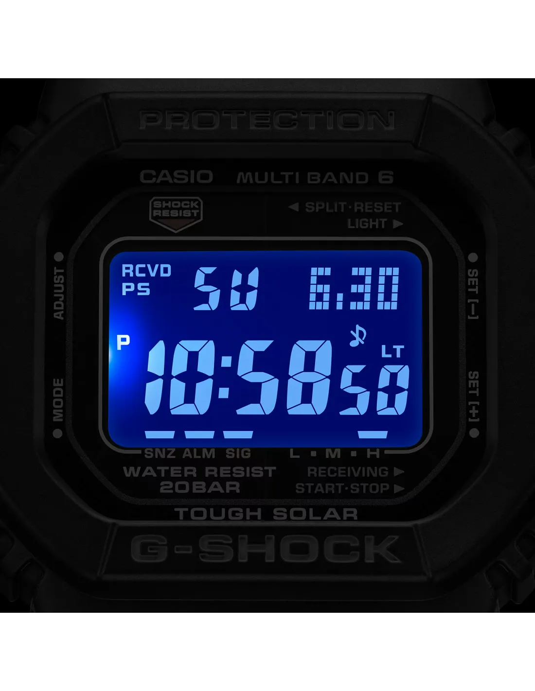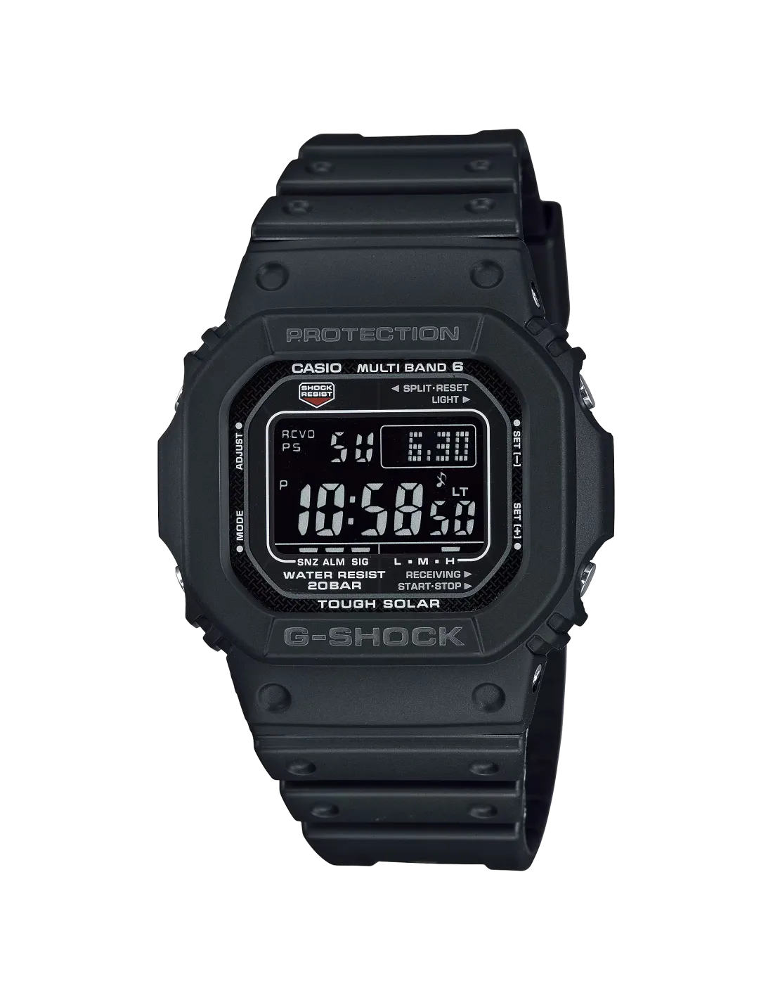 Denne populære serie har udviklet sig med funktioner som Tough Solar teknologi og Multi-Band 6. Mens den bevarer den klassiske kasseform og urskive designet fra den originale DW-5000, tilføjer den et moderne twist med en sort kasse og rem kombineret med en omvendt LCD-skærm.
