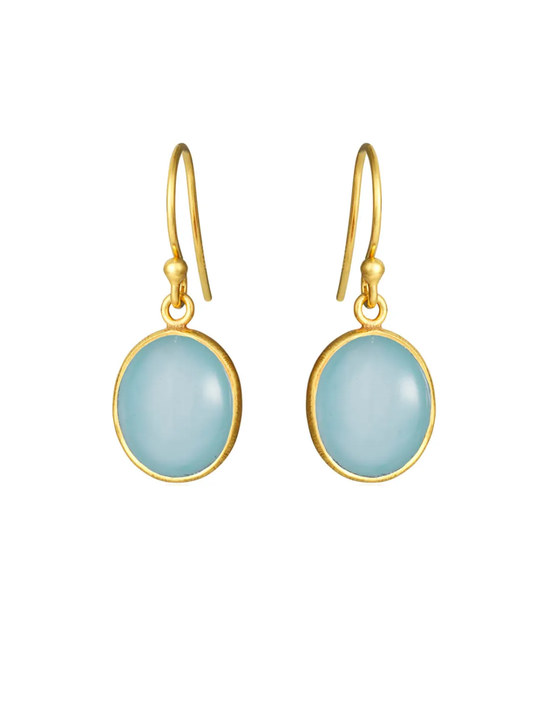 SUSANNE FRIIS BJØRNER | Øreringe i forgyldt med oval cabochon lyseblå krystal