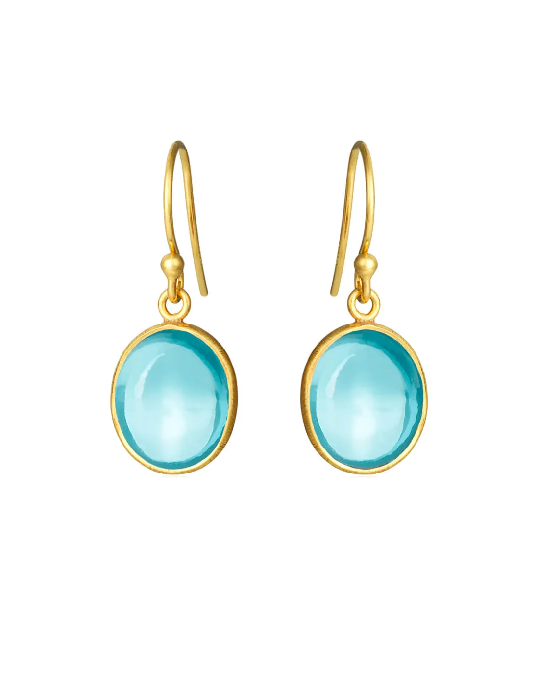 SUSANNE FRIIS BJØRNER | Øreringe i forgyldt med oval cabochon syntetisk blå topas