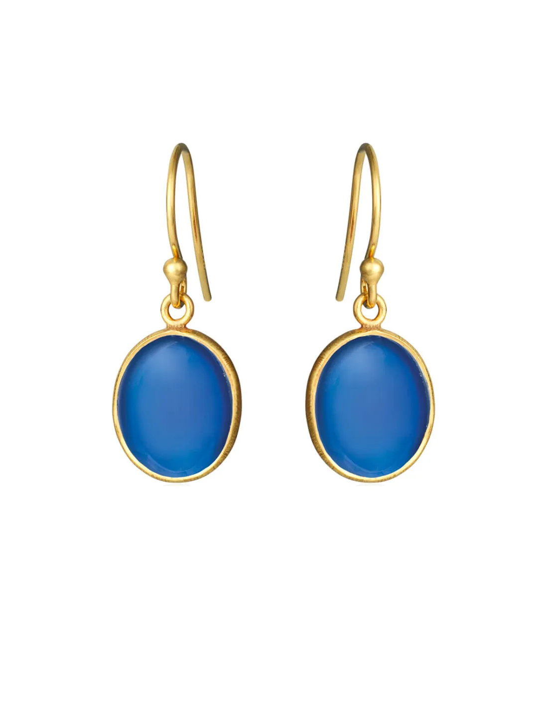 SUSANNE FRIIS BJØRNER | Øreringe i forgyldt med oval cabochon mørkeblå krystal