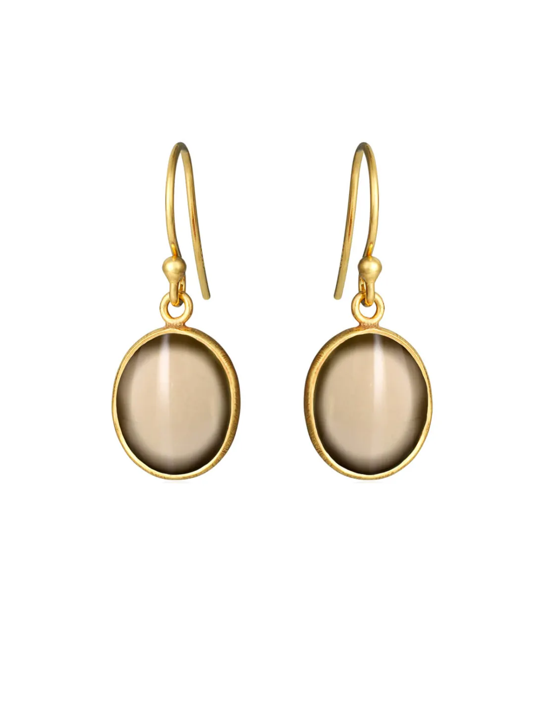 SUSANNE FRIIS BJØRNER | Øreringe i forgyldt med oval cabochon røgkvarts