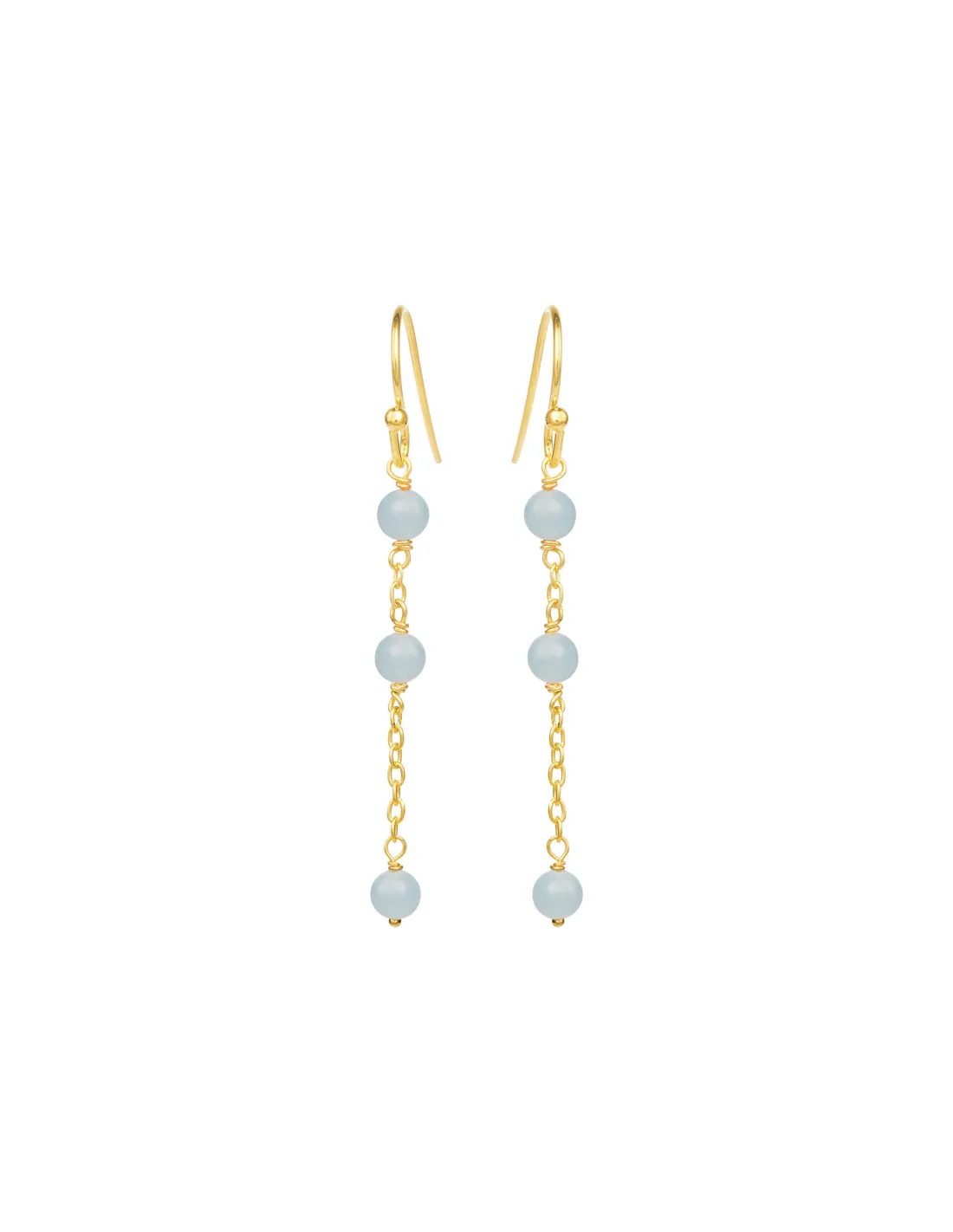 SUSANNE FRIIS BJØRNER | Ørering (krog), forgyldt sølv, 4 mm akvamarin ca. 4,5 cm