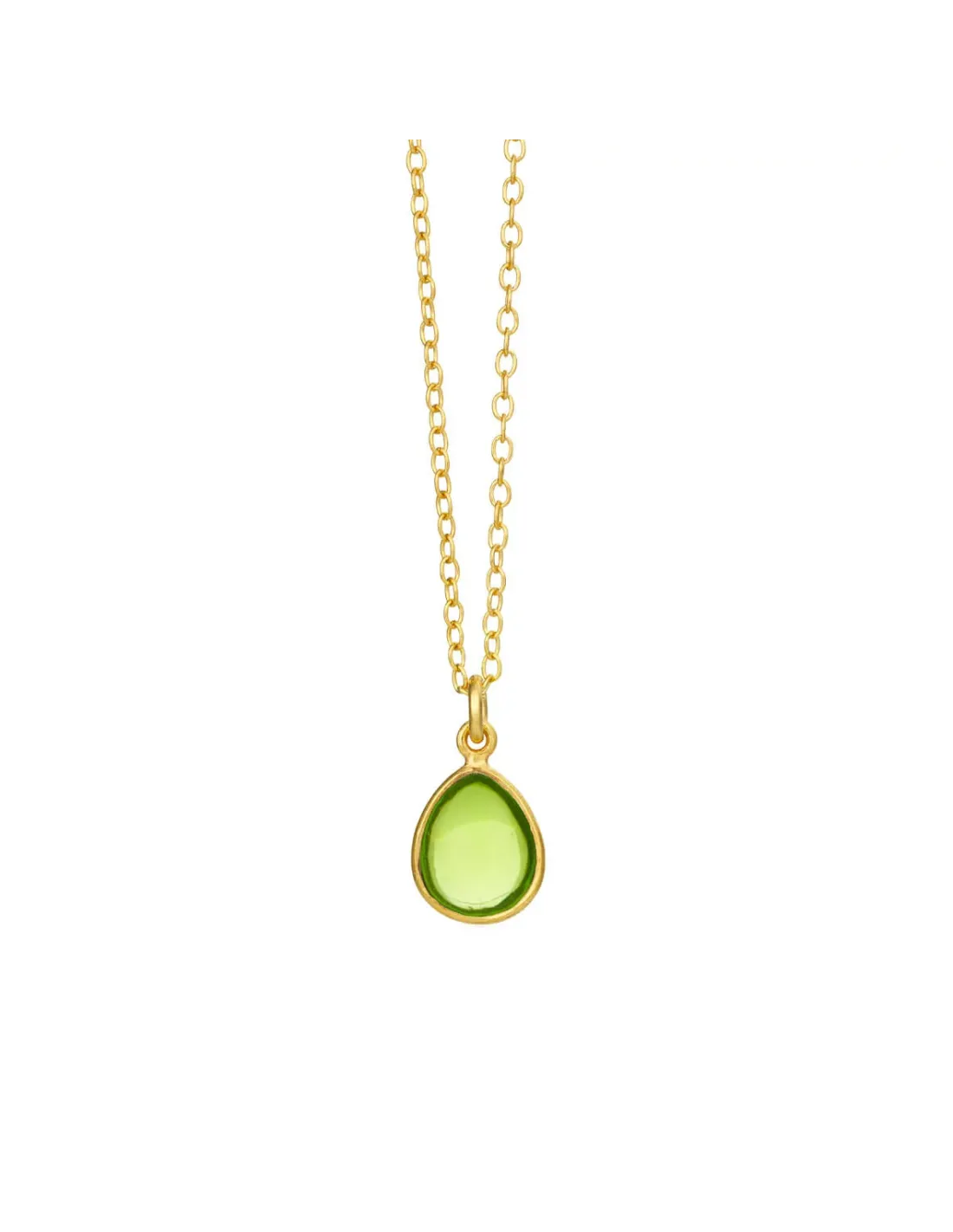Halskæde anker 45 cm, forgyldt sølv, 8×10 mm drop cabochon peridot krystal. Dansk smykkedesign af Susanne Friis Bjørner Copenhagen.