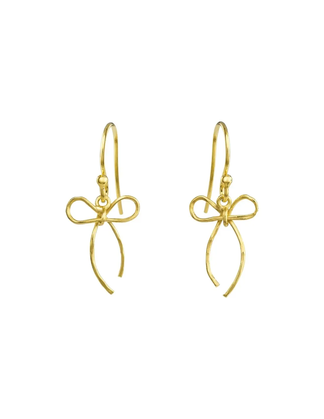 Dingle øreringe (kroge), forgyldt sølv, sløjfe ca. 14×17 mm med hamret overflade ca. 3 cm lang. Dansk smykkedesign af Susanne Friis Bjørner Copenhagen.