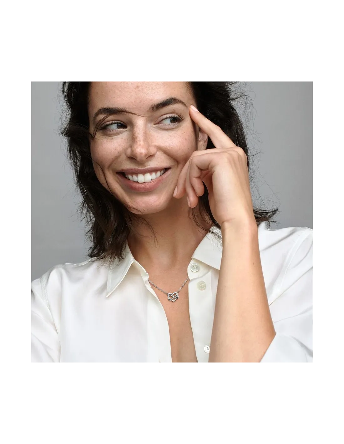 Du kan fejre din kærlighed til det uendelige univers med en funklende evighedshjerte Collier-halskæde. Smykket har et fast uendelighedssymbol og et hjertevedhæng, der symboliserer styrken i ubrydelige bånd, og er et minde om den kærlighed, du deler med dem, der betyder mest for dig. Det åbne hjerte har sten langs kanten af motivet og et asymmetrisk uendelighedssymbol, der snor sig om hjertet, og kæden kan justeres i tre forskellige længder. Bær det for at vise din påskønnelse af en, du holder af, eller giv det som gave til en, du holder af.