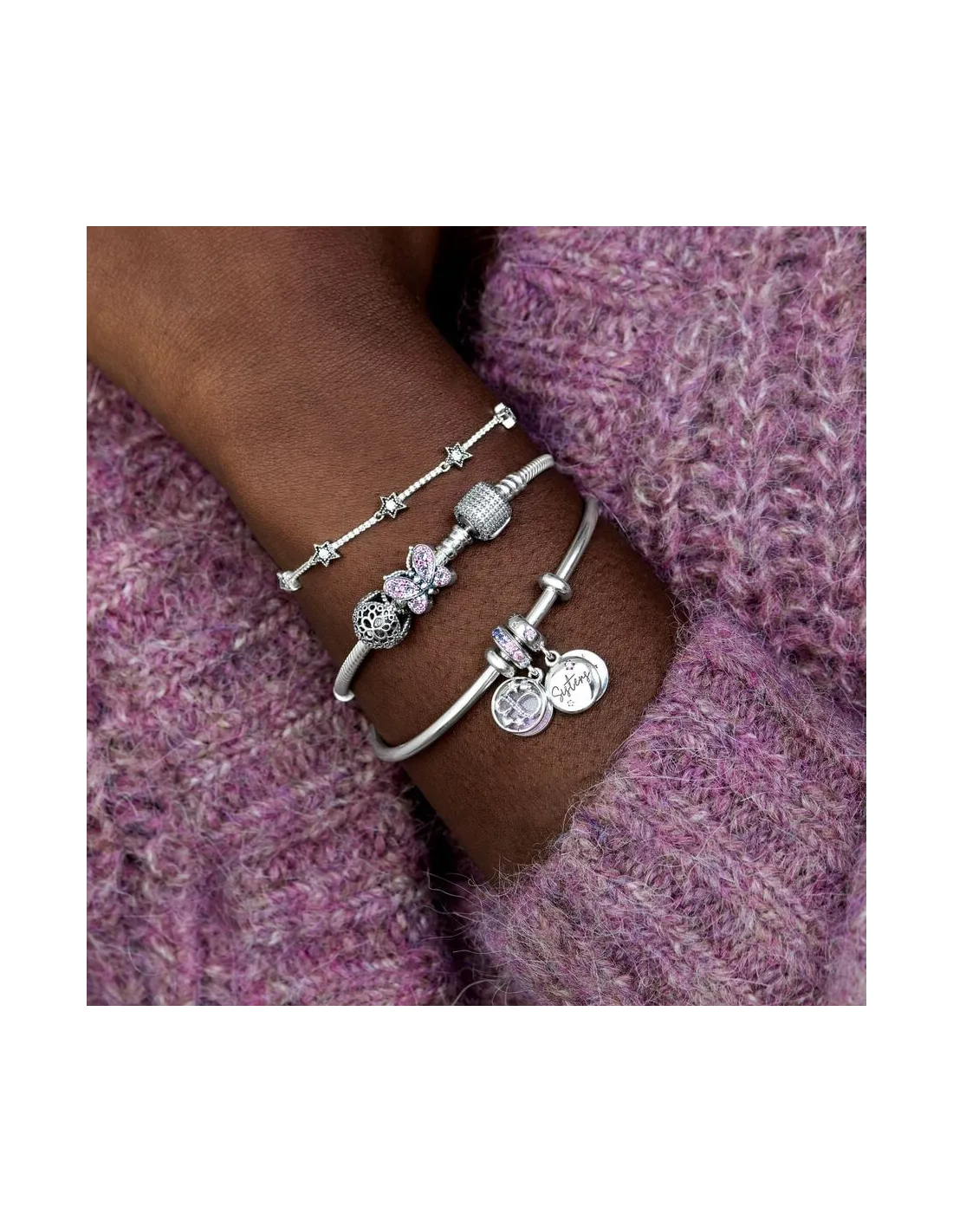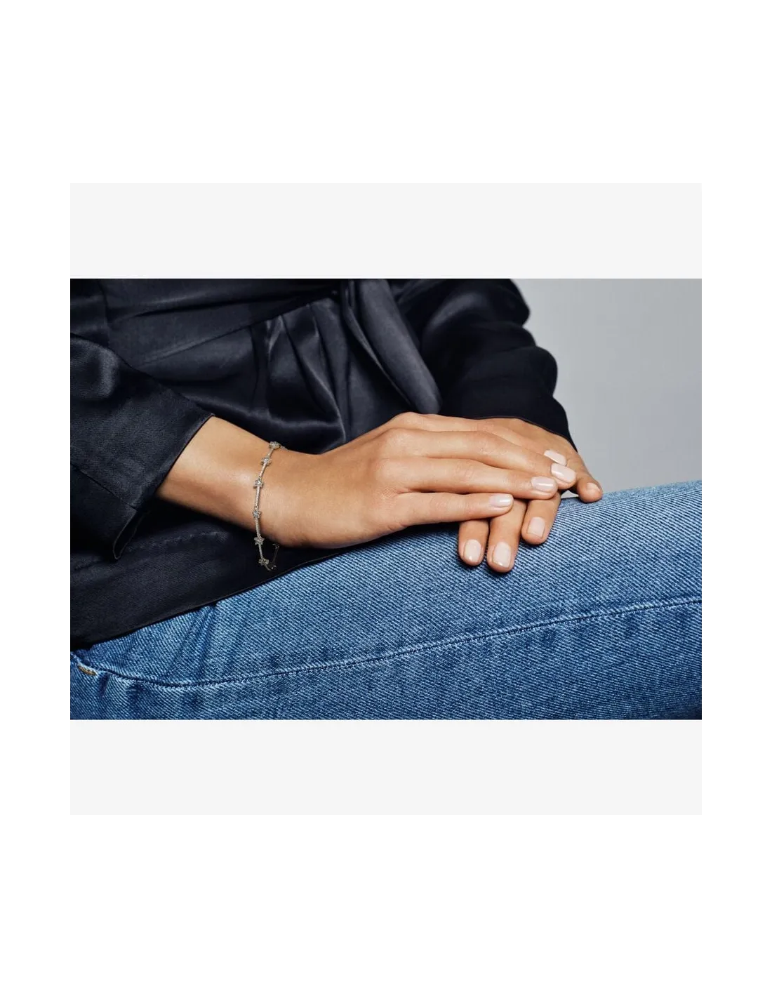 Lad dig inspirere af vores magiske drømmeverden, der er baseret på nattehimlens mystik og stjerneskærets funklen. Vores stjernearmbånd er dekoreret med stjerner i sterlingsølv med uregelmæssig form og dekoreret med runde kubiske zirkoniasten. De er forbundet med pavébånd som reference til et liv, der overgår selv vores vildeste drømme, hvor hver stjerne symboliserer en passeret milepæl eller en ny præstation i fremtiden. Lad armbåndet i sterlingsølv minde dig om alle de stolte øjeblikke der gør dig til den, du er.