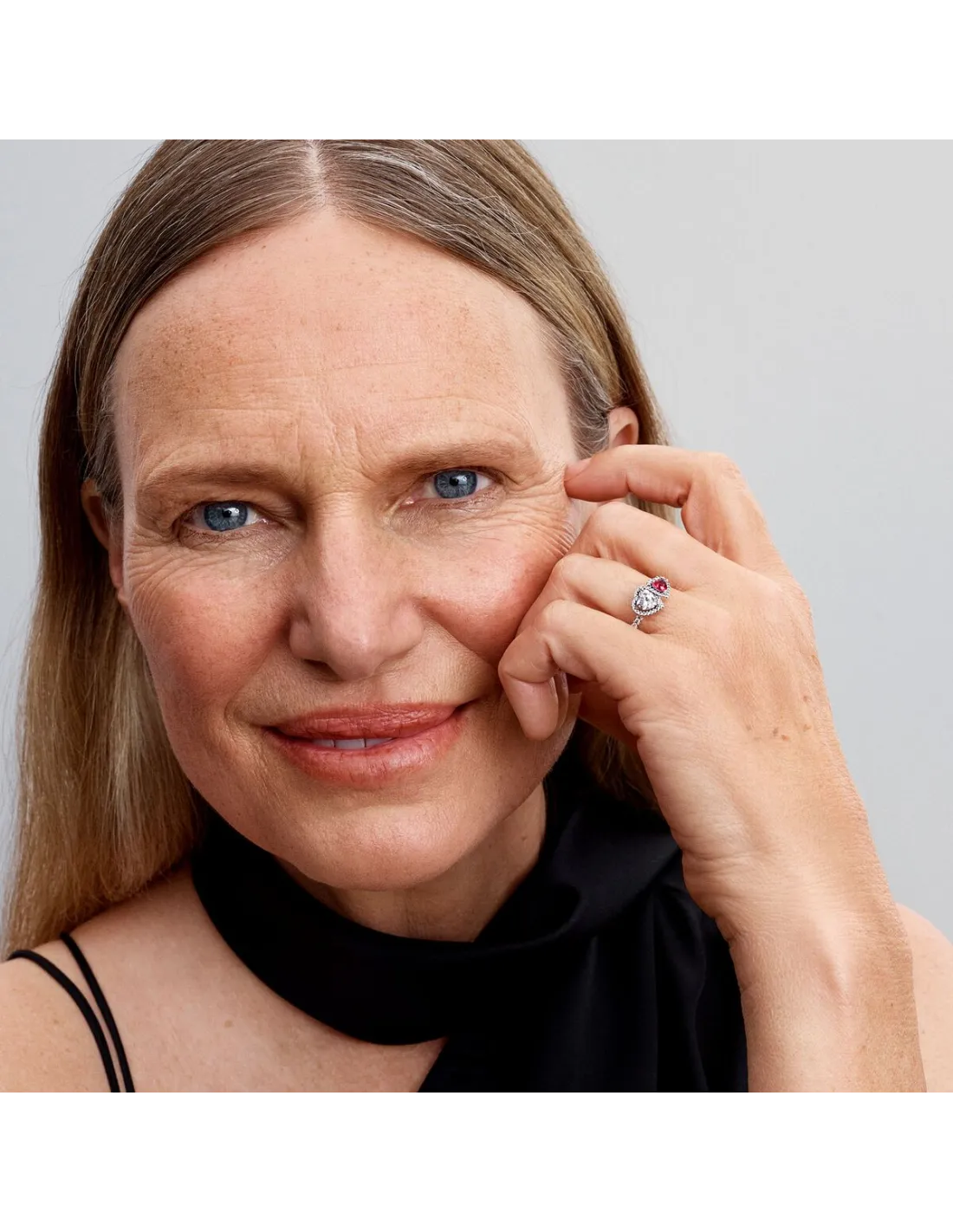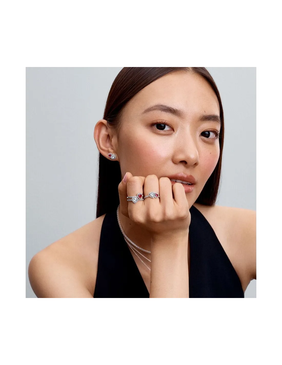 Et iøjnefaldende kærlighedsbudskab. Denne ring har to hjerteslebne sten, en klar kubisk zirkonia og en klar rød syntetisk krystal, der er forbundet af en krans af glitrende pavé. Den øverste halvdel af båndet i sterlingsølv er dekoreret med flere glitrende sten, der skaber en funklende effekt. Sæt den sammen med andre ringe i sterlingsølv, og skab en stabel, der emmer af kærlighed, eller lad den skinne alene som et stærkt statement. De to hjerter er inspireret af den kærlighed, der forbinder os, og symboliserer harmoni og urokkelig støtte mellem to sjæle.