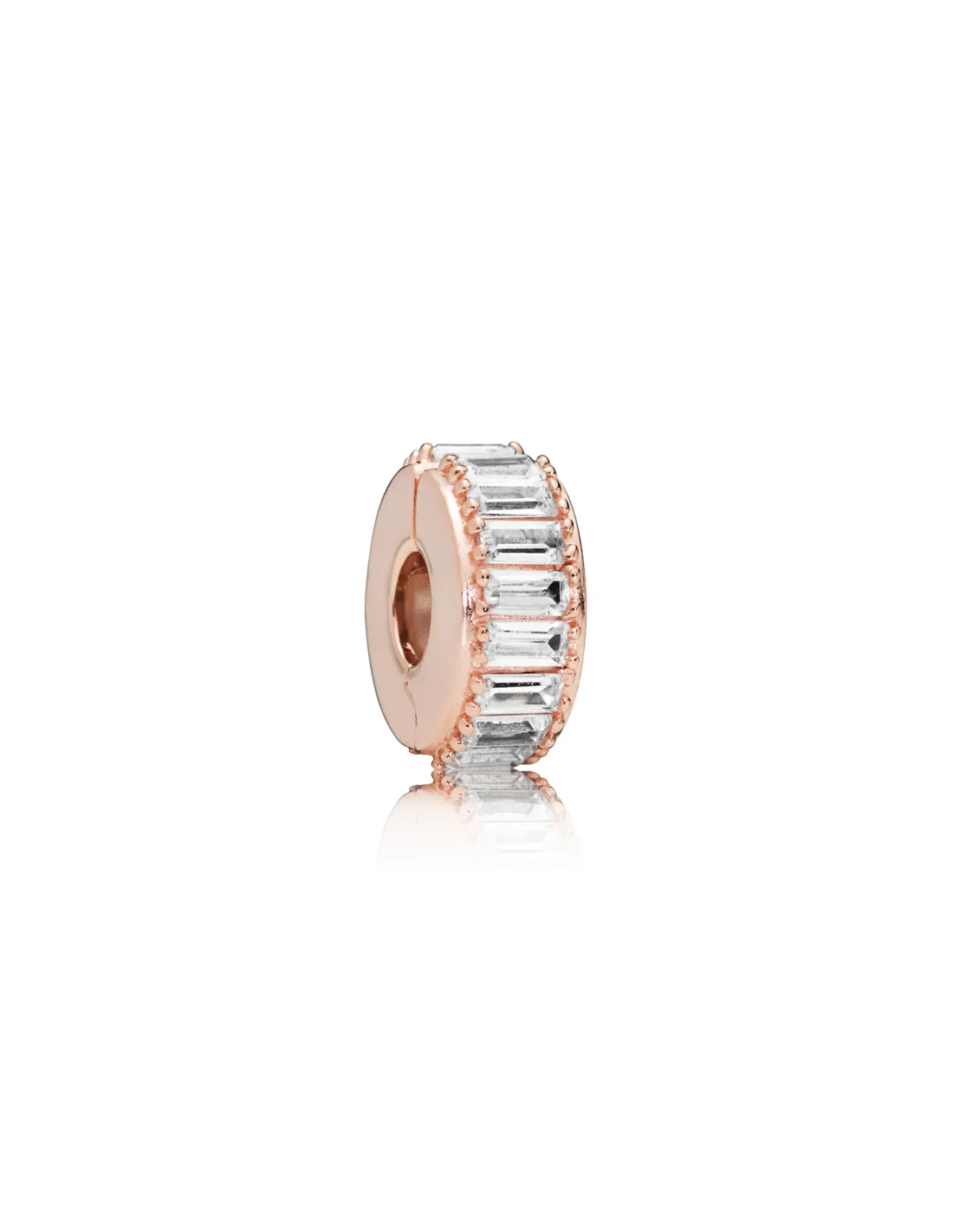PANDORA | 14 karat rosa forgyldt klemmeled med klar cubic zirconia og silikone greb