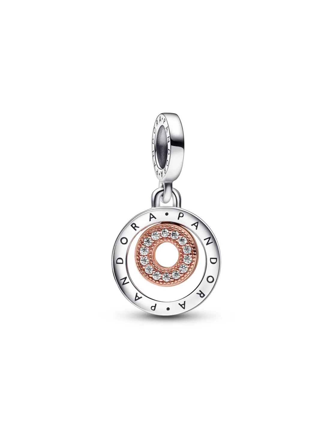 PANDORA | Pandora logo sterling siler og 14 karat rosa forgyldt dangle med klar cubic zirconia