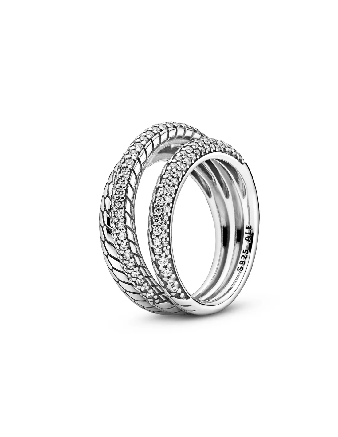 PANDORA | Slangekædemønster sterling sølv ring med klare cubic zirconia