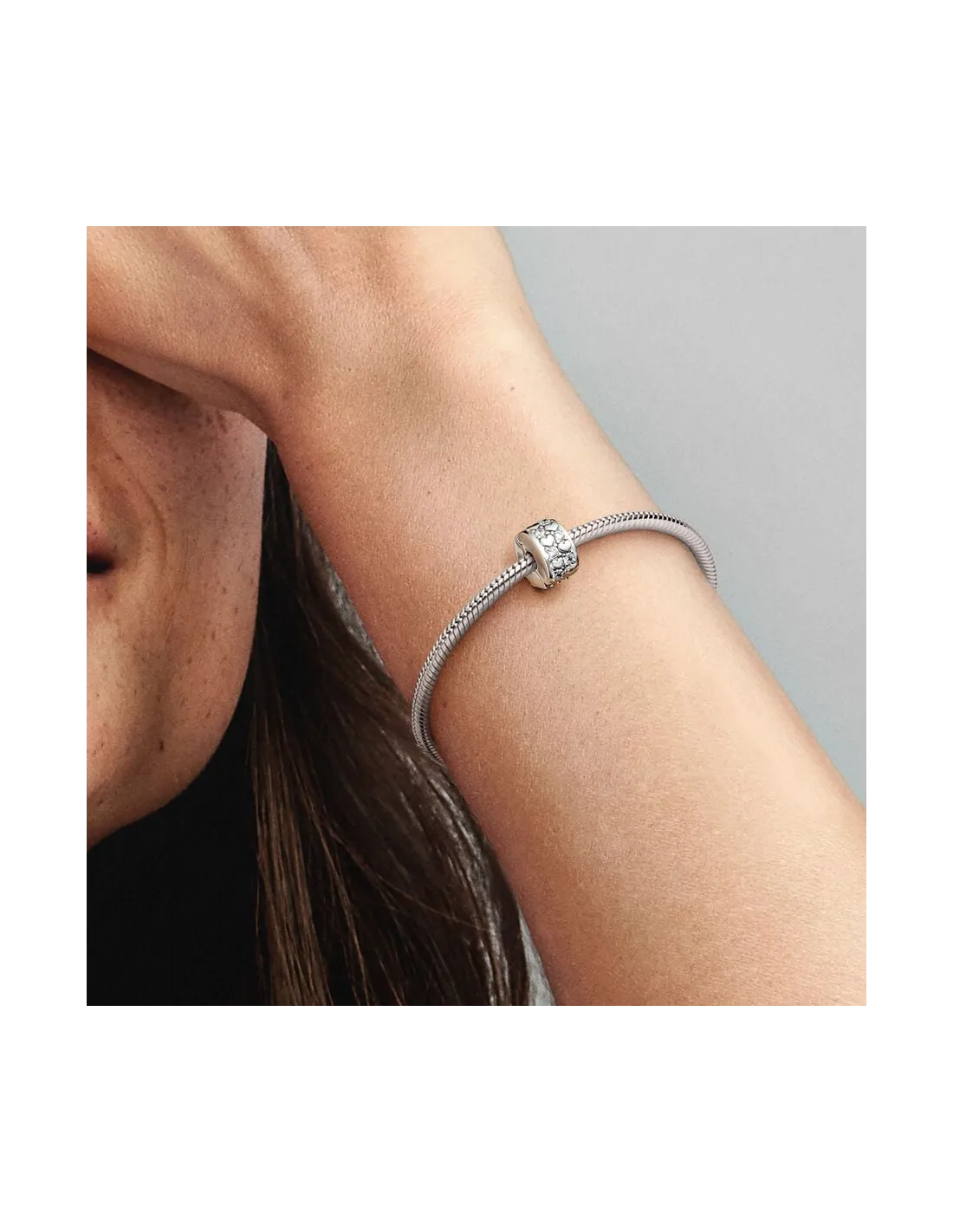 Pas godt på dine charms og hold dem sikkert på plads med dette symbol på kærlighed. Vores Uendelighedshjerter Funklende Klemmeled er fremstillet i sterlingsølv og består af to rækker af fremhævede hjerter med funklende sten, der giver lidt glitter til dit look. Bær det på dit armbånd, og vis dine yndlingscharms frem. Bemærk venligst: Klemmeleddet har ingen silikone greb, så den vil glide, hvis den ikke er stylet på trådene (to forhøjede charms).