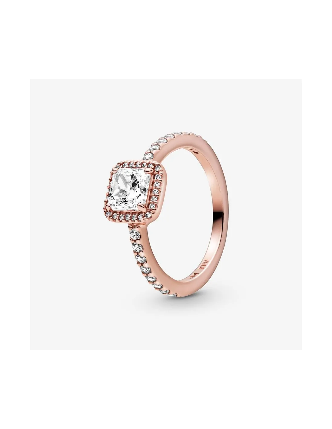 Den vidunderlige vintageinspirerede Kvadratisk Funklende Halo Ring er en, du vil elske hele livet. Den elegante ring, der er belagt med 14 kt. roséguld, er pyntet med funklende sten i kubisk zirkonia og har en stor kvadratisk slebet midtersten. Bær den alene som en iøjnefaldende cocktailring, eller lad den få modspil af forskellige andre Pandora ringe i et frisk, nutidigt look.