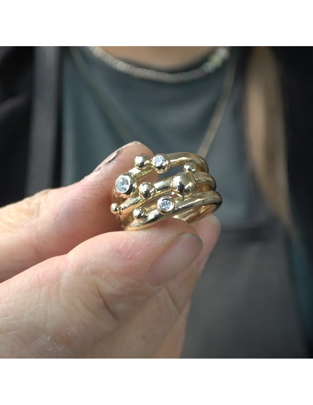 by Malene | 14kt. guld ring m. Dutter & diamanter