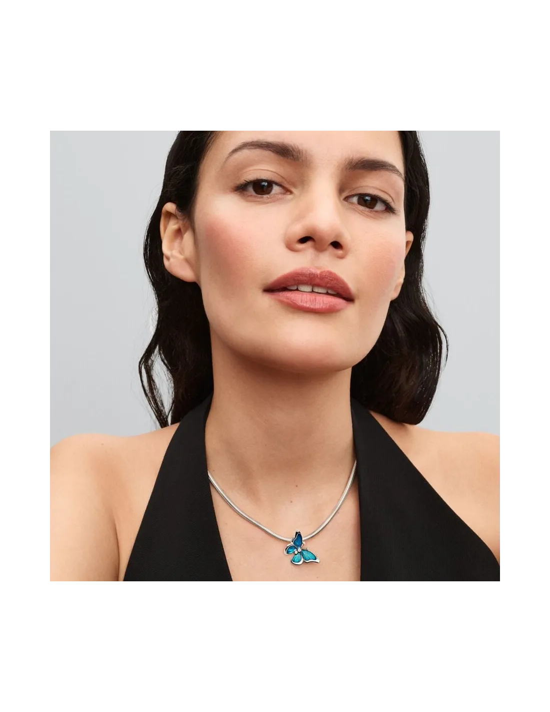 Dette overdimensionerede charm i sterlingsølv indfanger skønheden og ynden ved en rigtig sommerfugl, som hvis den i et øjeblik var landet på dine smykker. Iriserende emalje på vingerne skaber en livlig farveeffekt, der skifter med lyset. Glitrende sten giver det sidste touch til kroppen og antennerne. Bær dette iøjnefaldende smykke som et symbol på sommerfuglens forvandlingsrejse, der inspirerer os til at omfavne forandring og vækst.