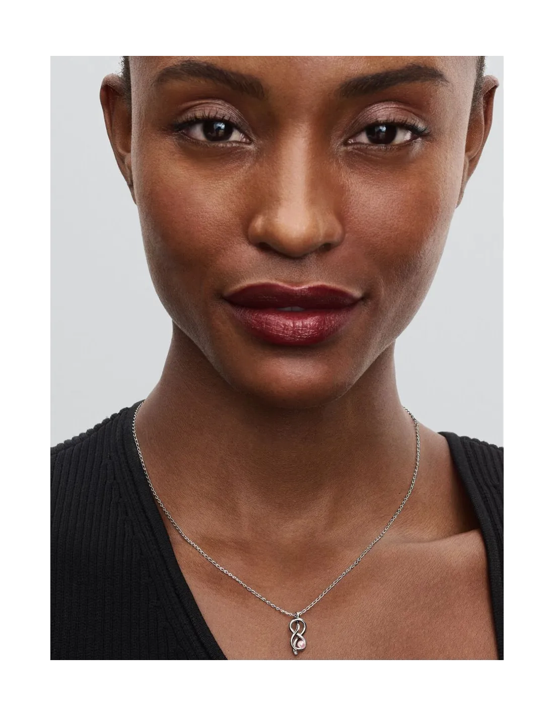 Giv din halsudskæring et strejf af pink med en Uendelighedsknude Collier-halskæde. Denne halskæde i sterlingsølv har en pink lakeret kunstig perle, der er indkapslet i et uendelighedsknudesymbol, der er indfattet med funklende sten i hver ende. Skub vedhænget på kæden for at justere længden. Den pink perle er elegant, men samtidig uhøjtidelig og tilfører lige nok farve til at pifte ethvert look op – men kan også fungere som en alsidig neutral farve.