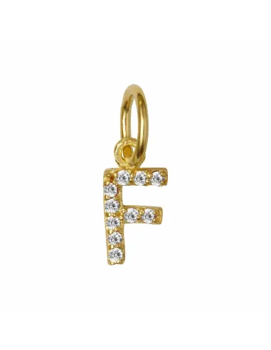 Vedhæng, sølv forgyldt, zirkoner, bogstav F