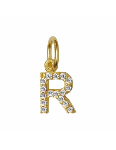 Vedhæng, sølv forgyldt, zirkoner, bogstav R