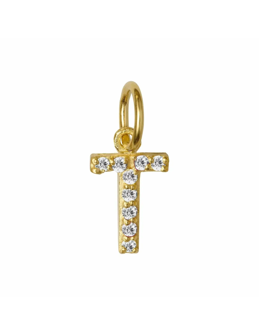 Susanne Friis Bjørner | T bogstav forgyldt sølv vedhæng med zirkoner