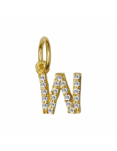 Vedhæng, sølv forgyldt, zirkoner, bogstav W
