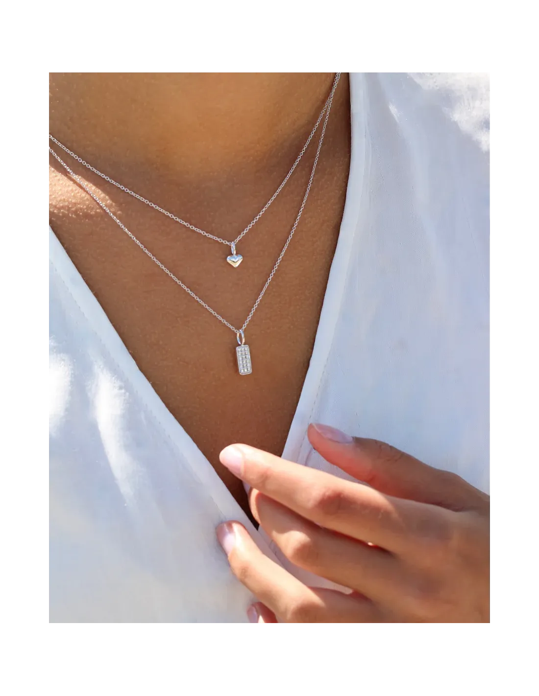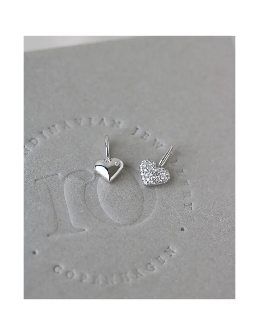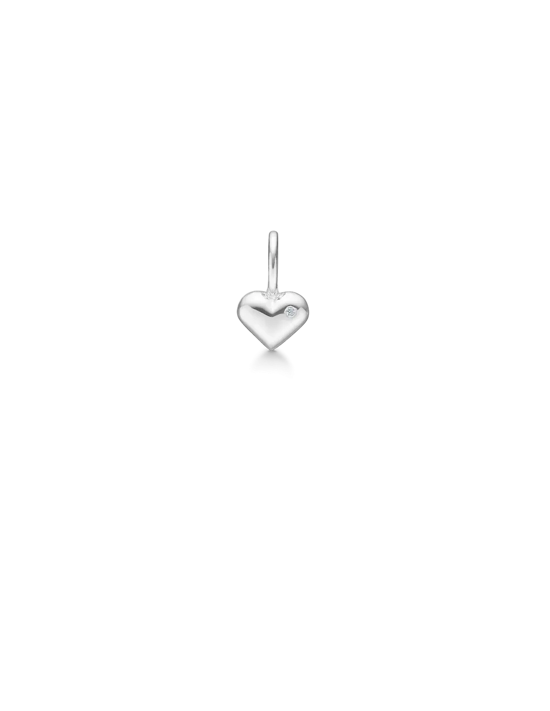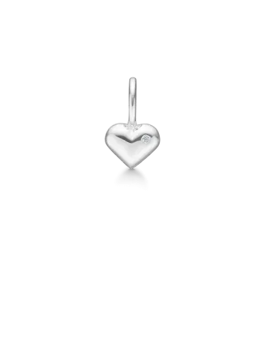 Skønt lille guld hjerte vedhæng med diamant. Bær det tæt på dit eget hjerte i en kæde om halsen. Enten alene eller sammen med andre vedhæng for et personligt design. Rock My Heart -vedhænget er fremstillet i 18kt solid hvidguld. Sat med en Ro signatur-diamant. Brill.0.003ct TW.VS. Ø 6mm uden øsken Dette fine vedhæng findes også i 18kt rødguld.