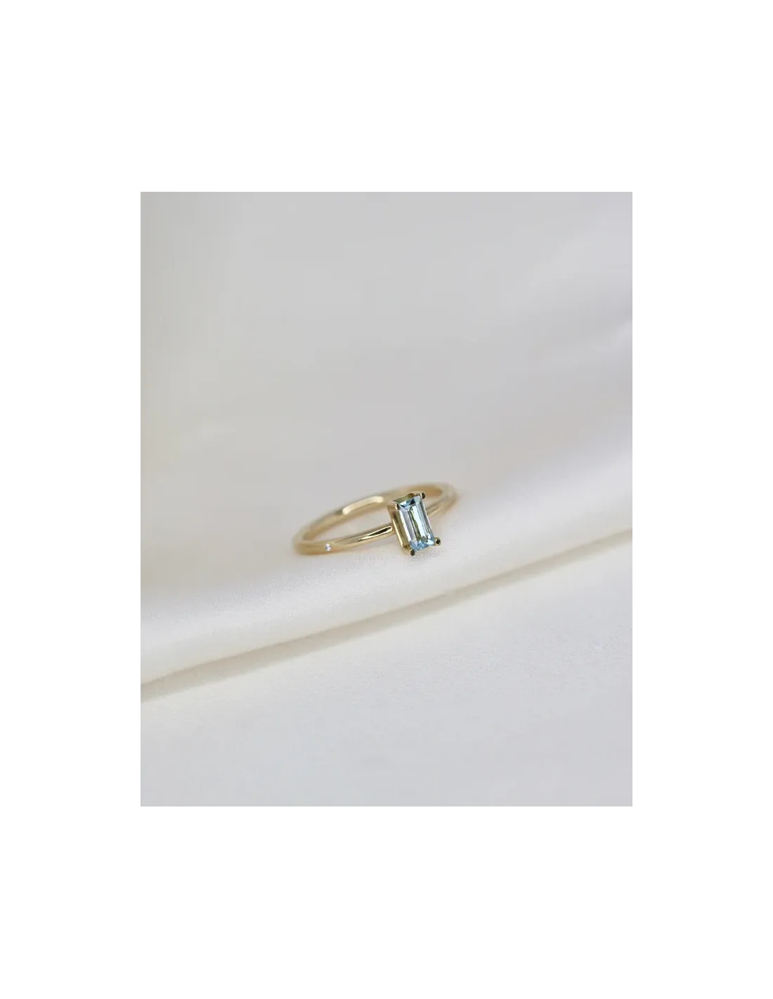 Enkel og klassisk ring fremstillet af de bedste materialer. Den blå akvamarin er slebet, så dens klarhed og skønhed fremhæves.
