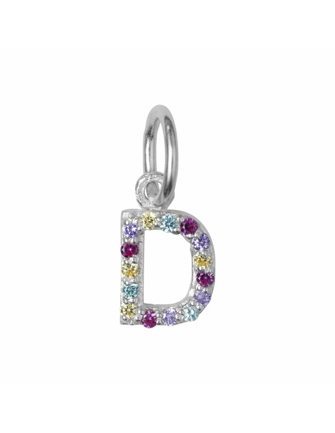 Vedhæng, sølv, flerfarvede kubiske zirkonia, bogstavet D
