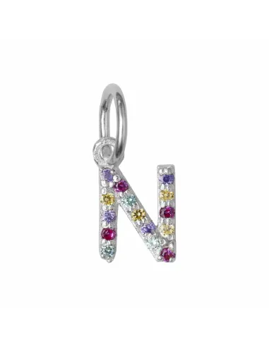 Vedhæng, sølv, flerfarvede kubiske zirkonia, bogstavet N