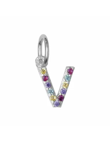 Vedhæng, sølv, flerfarvede kubiske zirkonia, bogstavet V