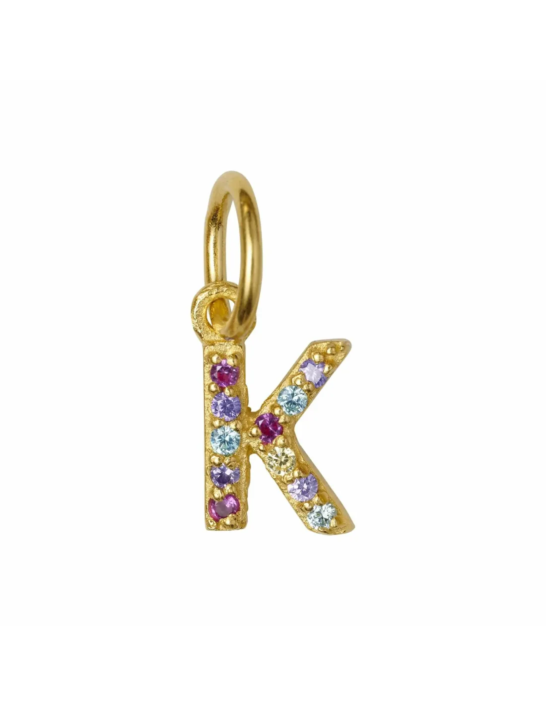 Vedhæng, forgyldt sølv, flerfarvede kubiske zirkonia, bogstavet K