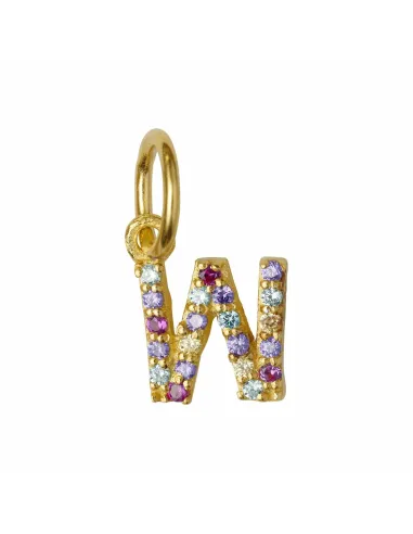 Vedhæng, forgyldt sølv, flerfarvede kubiske zirkonia, bogstavet W