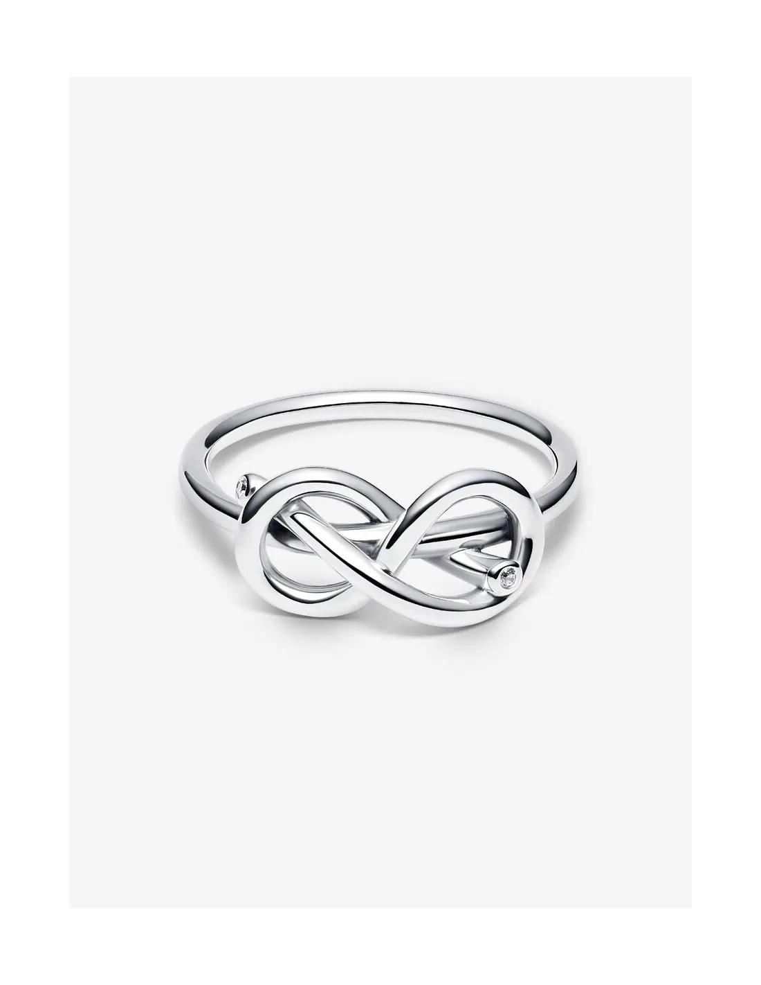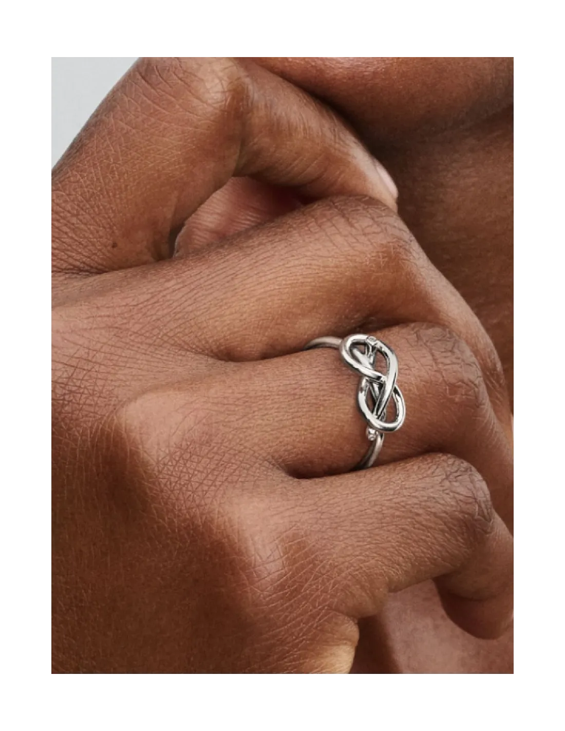 Bring et symbol på uendelighed ind i hverdagen med denne uendelighedsknude ring. Denne ring er håndforarbejdet i sterlingsølv og har et uendelighedsknudesymbol i midten med en funklende sten i hver ende. Denne slanke og fine ring kan nemt bruges både til afslappede hverdagslook og dristige aftenlook – og bærer al sin symbolik af evig kærlighed og alle væseners indbyrdes forbindelse. Et enkelt smykke med uendeligt potentiale.