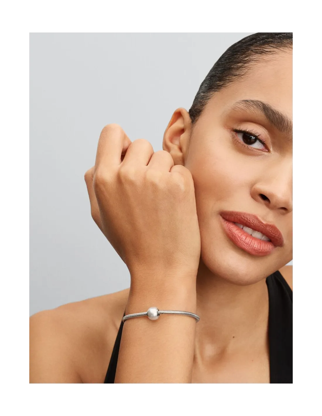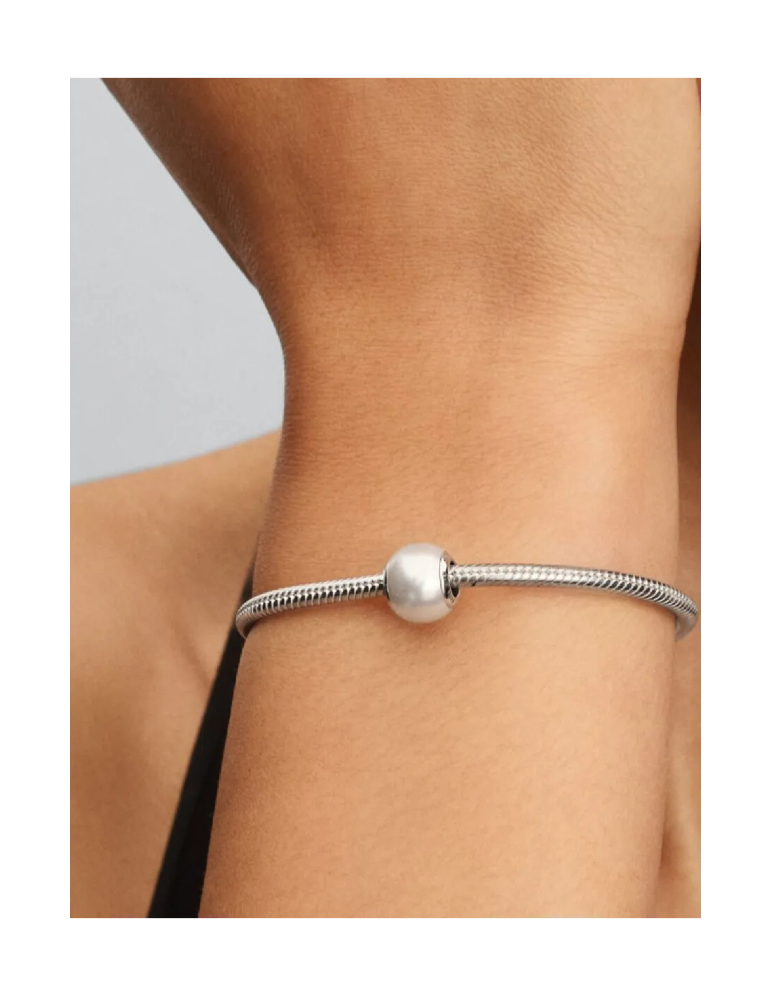 Løft ethvert look med et Hvidt Charm. Dette charm består af en rund, hvid kunstig perle med en kerne i sterlingsølv, så det nemt kan sættes på dit yndlingsarmbånd. Det er inspireret af perlen som et symbol på visdom, ro og kærlighed og vil fuldende ethvert look. Som et ekstra plus er det også en påmindelse om de gaver, du bærer i dig selv – dem, du kan fremkalde, når du vil.