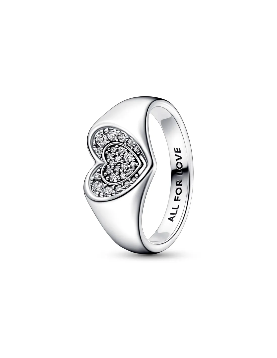 PANDORA | Hjerteformet sterlingsølvring med klare kubiske zirkoner