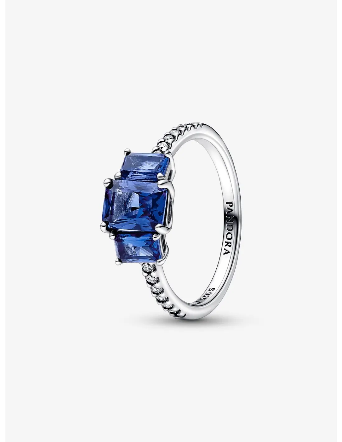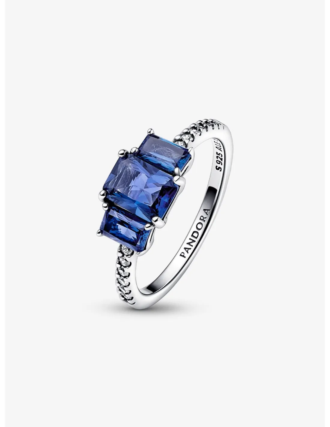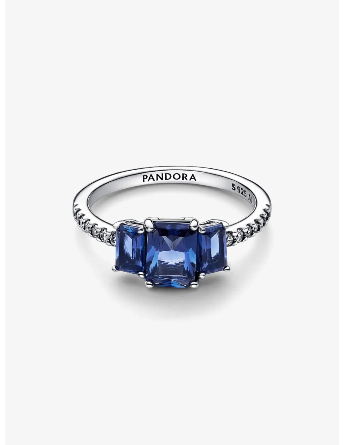 PANDORA | Blå Rektangulære Tre Sten Funklende Ring