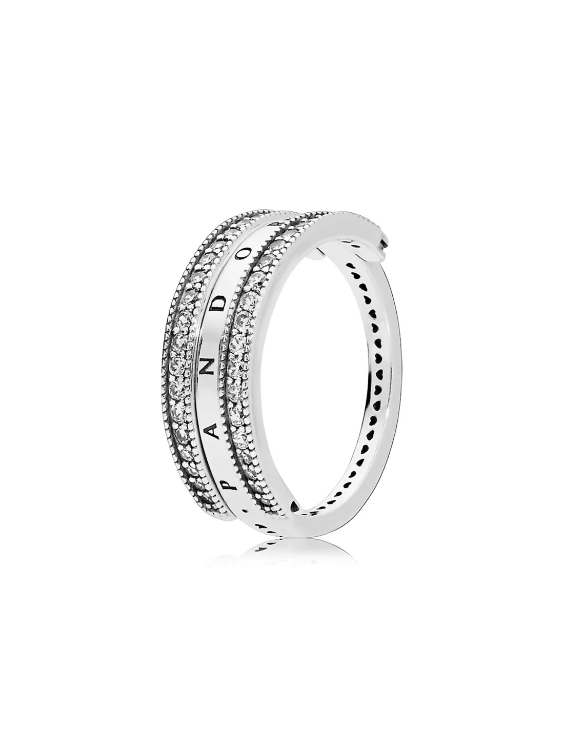 PANDORA | Vendbar sølvring med PANDORA-logo og klare kubiske zirkoner