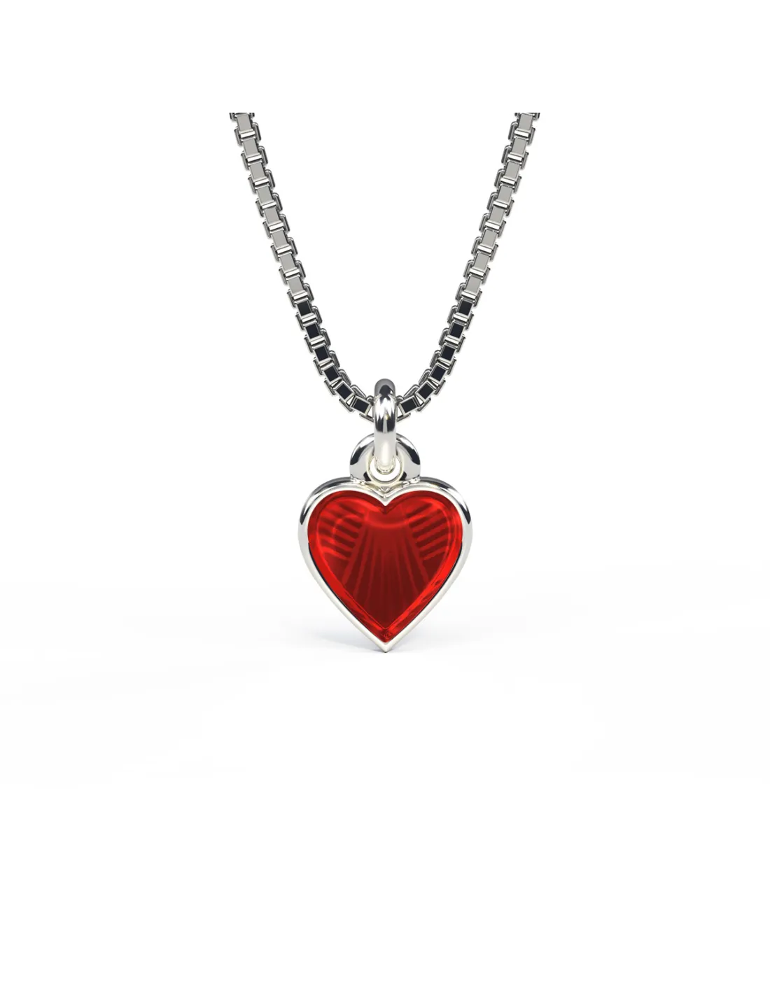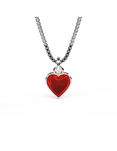 PIA & PER | Halskæde i sølv med rødt hjerte i emalje