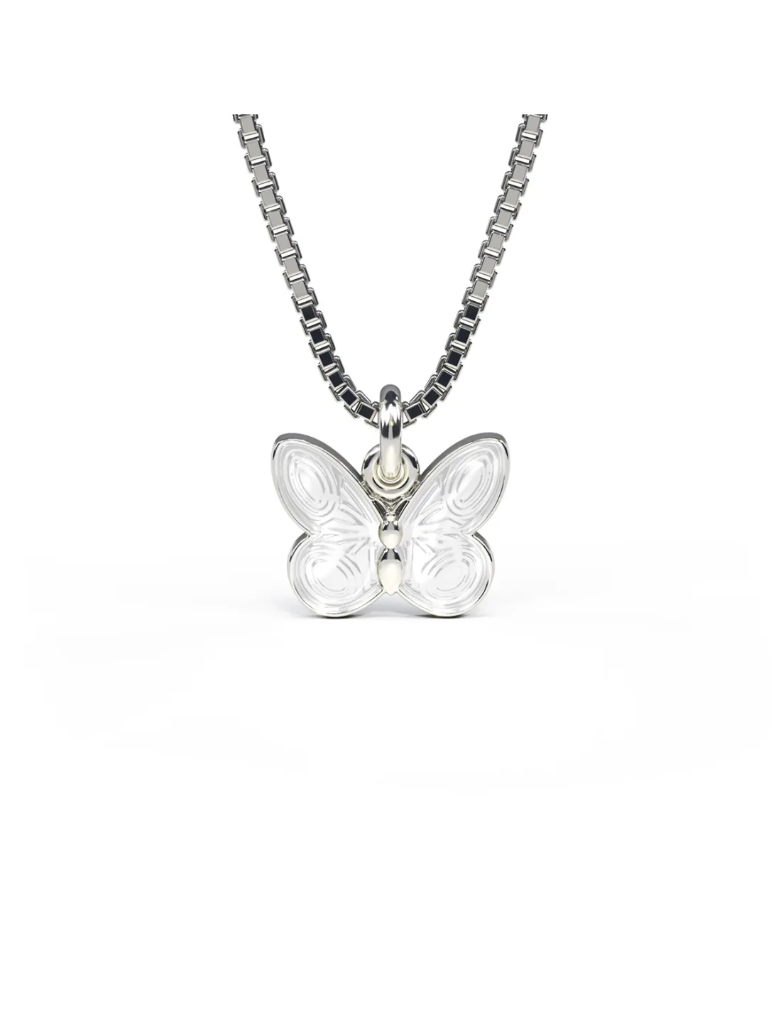 PIA & PER | Halskæde i sølv med hvid sommerfugl i emalje