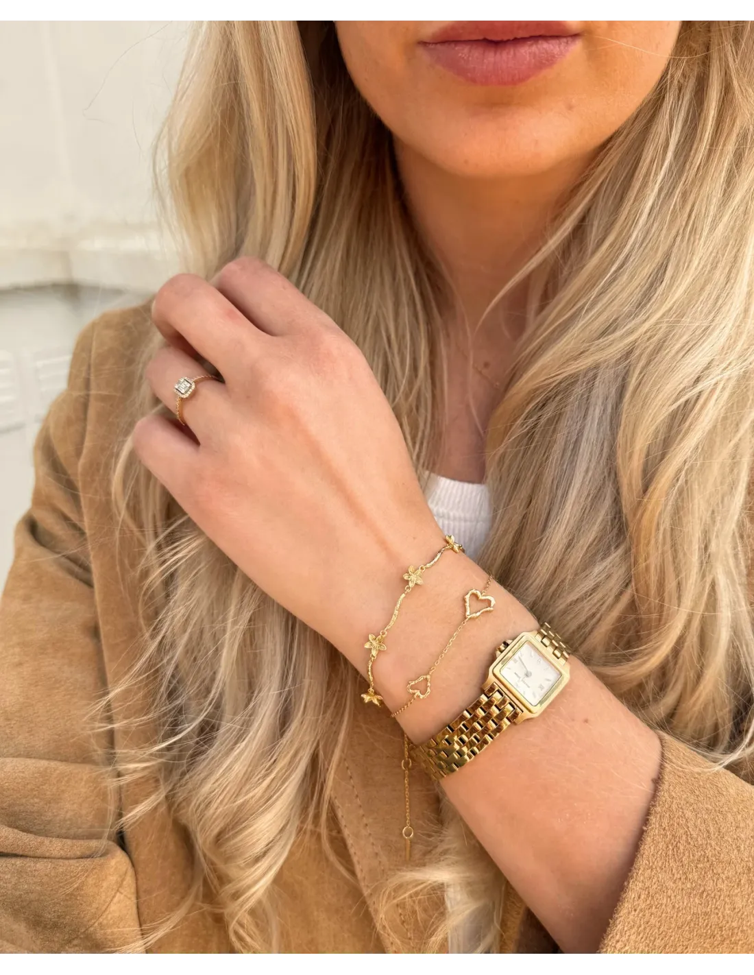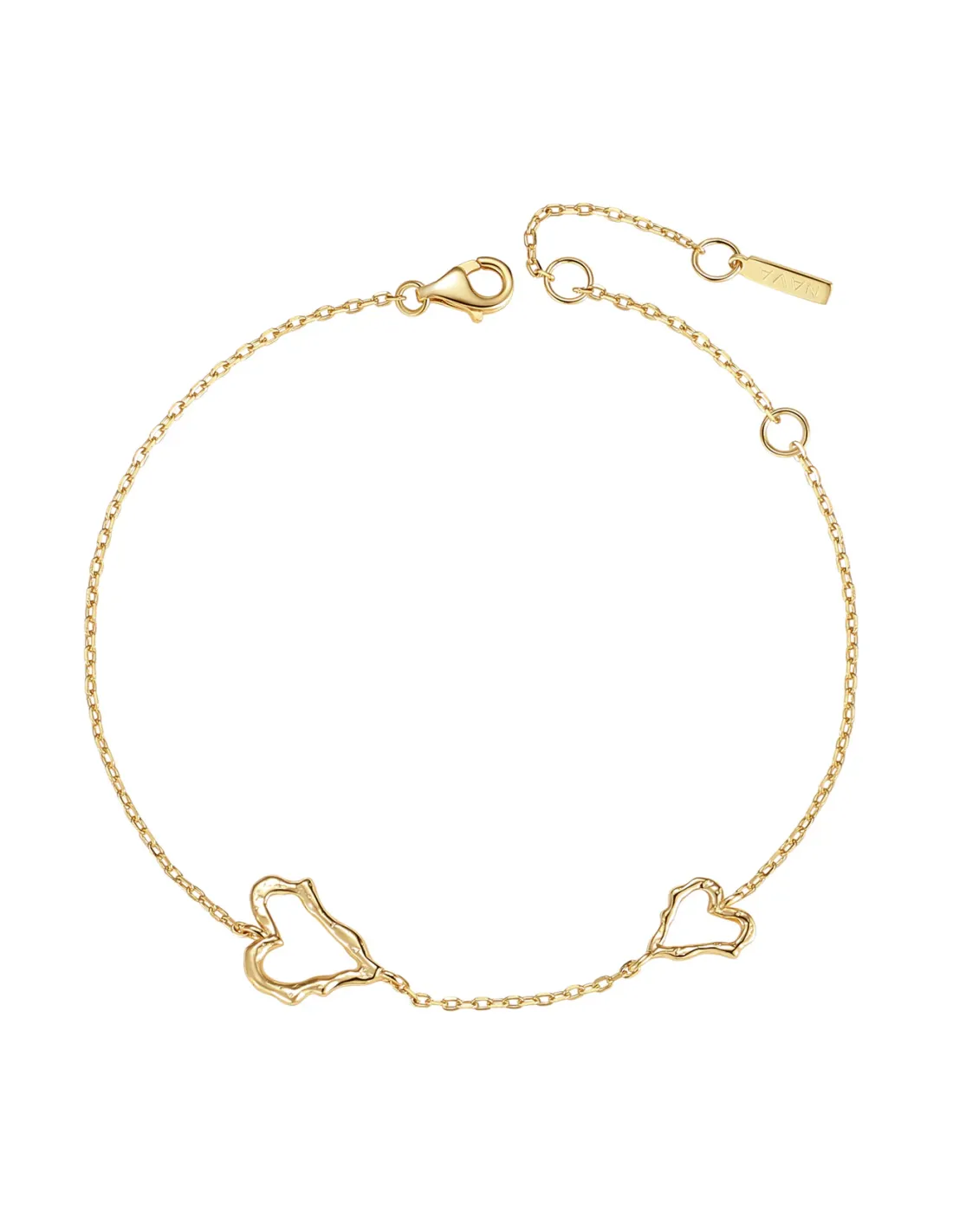 Nola Bracelet er et fint og feminint armbånd med to abstrakte hjerter formet i bløde, bølgende linjer. De åbne hjertevedhæng er inspireret af kystens naturlige former og giver armbåndet et let og organisk udtryk. Perfekt alene eller i kombination med andre smykker for et personligt look.