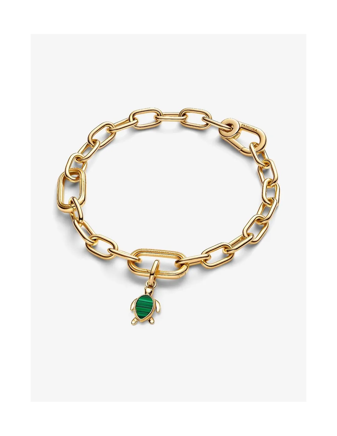 Opdag et symbol på lang levetid og tålmodighed med dette skildpaddeinspirerede charm med en smuk imiteret malakitsten og indviklede detaljer.