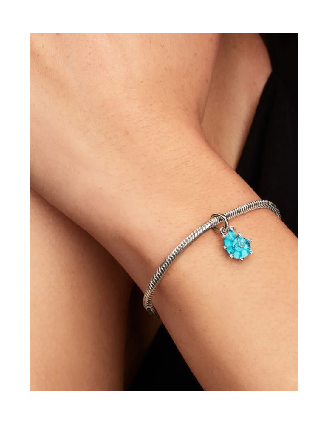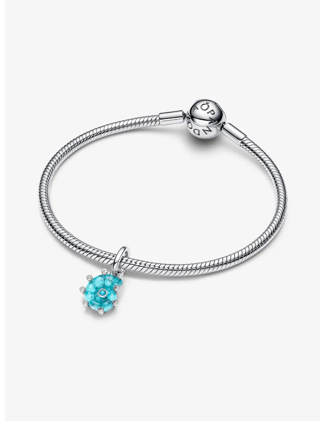 PANDORA | Blåt Muranoglas Havsneglecharm med vedhæng Sterlingsølv