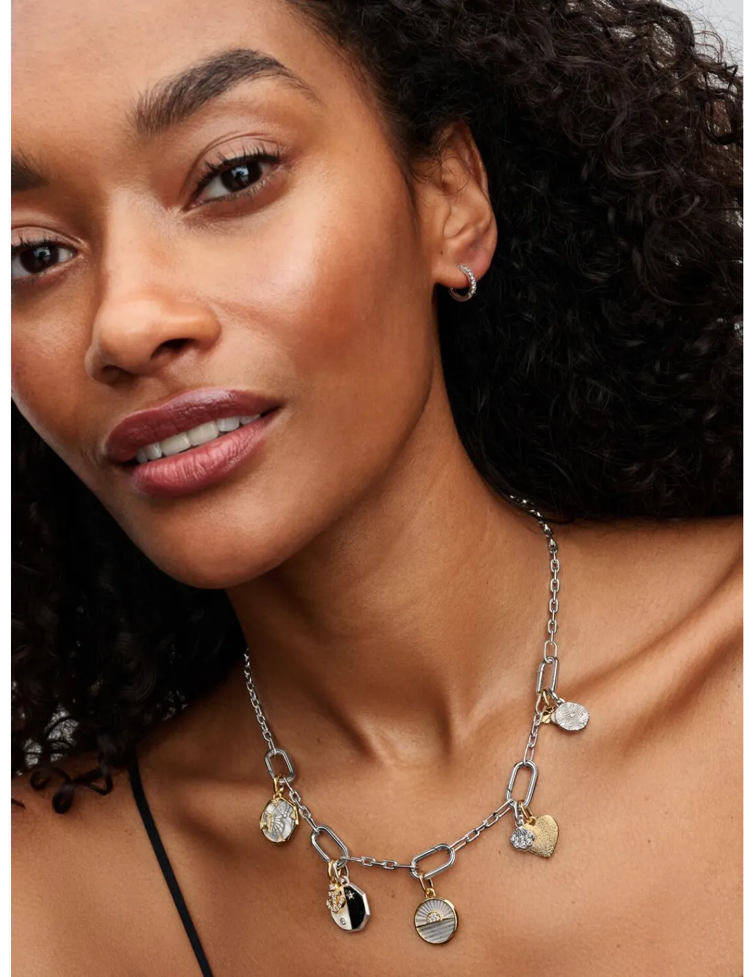 Pandora begyndte at designe sine elskede charms i år 2000. Hvert charm har en betydning, og nogle gange flere betydninger – en fra dets designer og flere fra den person, der bærer det og elsker det. Uanset om det er en fejring af farver eller mønstre eller en hyldest til et bestemt land, anledning, aktivitet eller, vigtigst af alt, en person, er hvert charm skabt til at fortælle sin ejers personlige historie og samtidig vise hendes personlige stil. Vores charms bæres med kærlighed på armbånd og i halskæder og er skabt specielt til at blive båret på måder, der er unikke for den, der bærer dem.