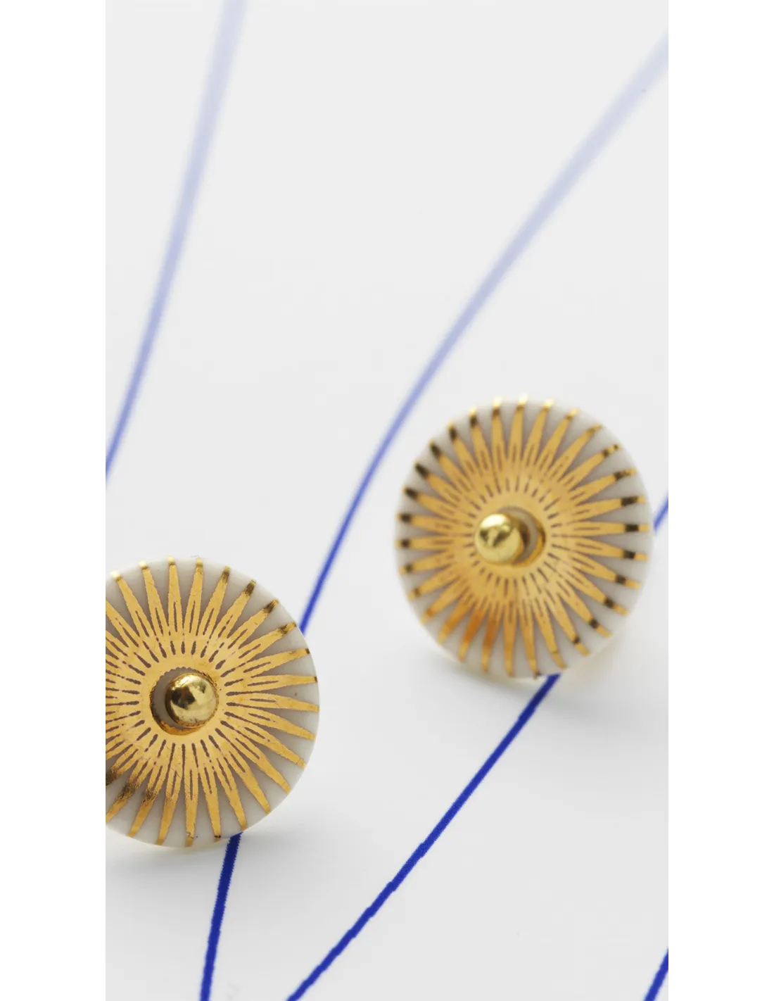 Ørestikkere i hvid porcelæn, med SCHERNING's ikoniske SPLASH dekoration i blank guld.