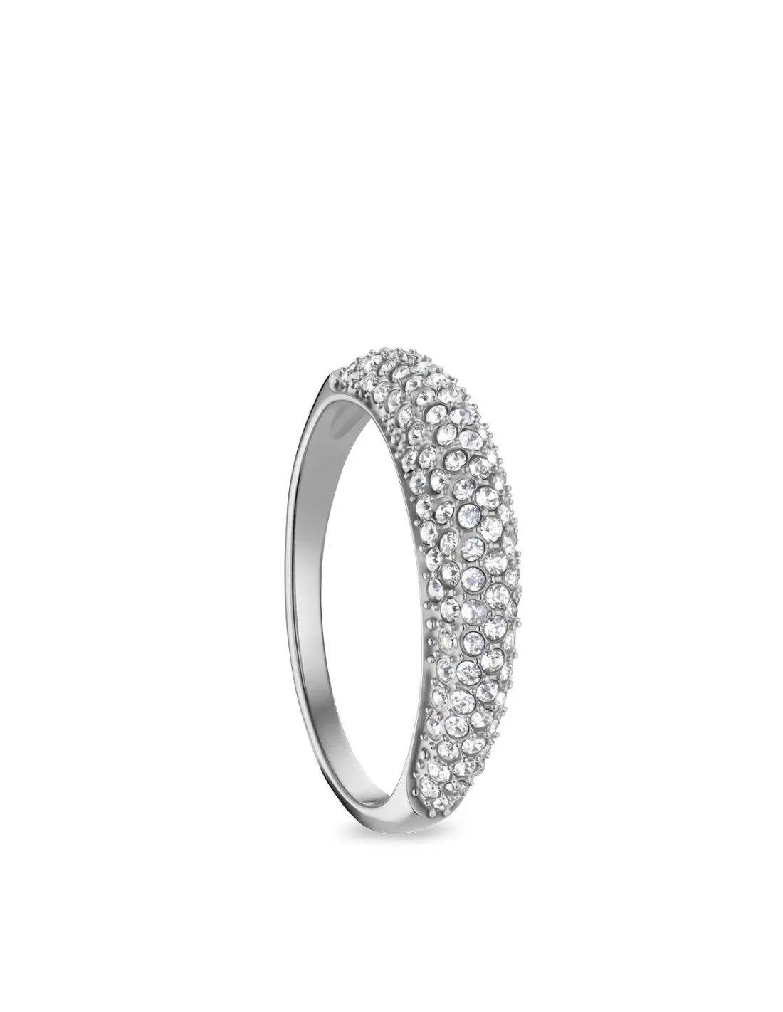 Denne nye ring fra vores Arctic Pavé Collection er en strålende fortolkning af raffineret elegance og imponerende glans. Fremstillet i skinnende sølvfarvet rustfrit stål er fronten overdådigt besat med et tæt lag af funklende krystalglassten i pavé-indfatning, hvilket skaber et fortryllende lysspil, der fanger opmærksomheden fra alle vinkler.