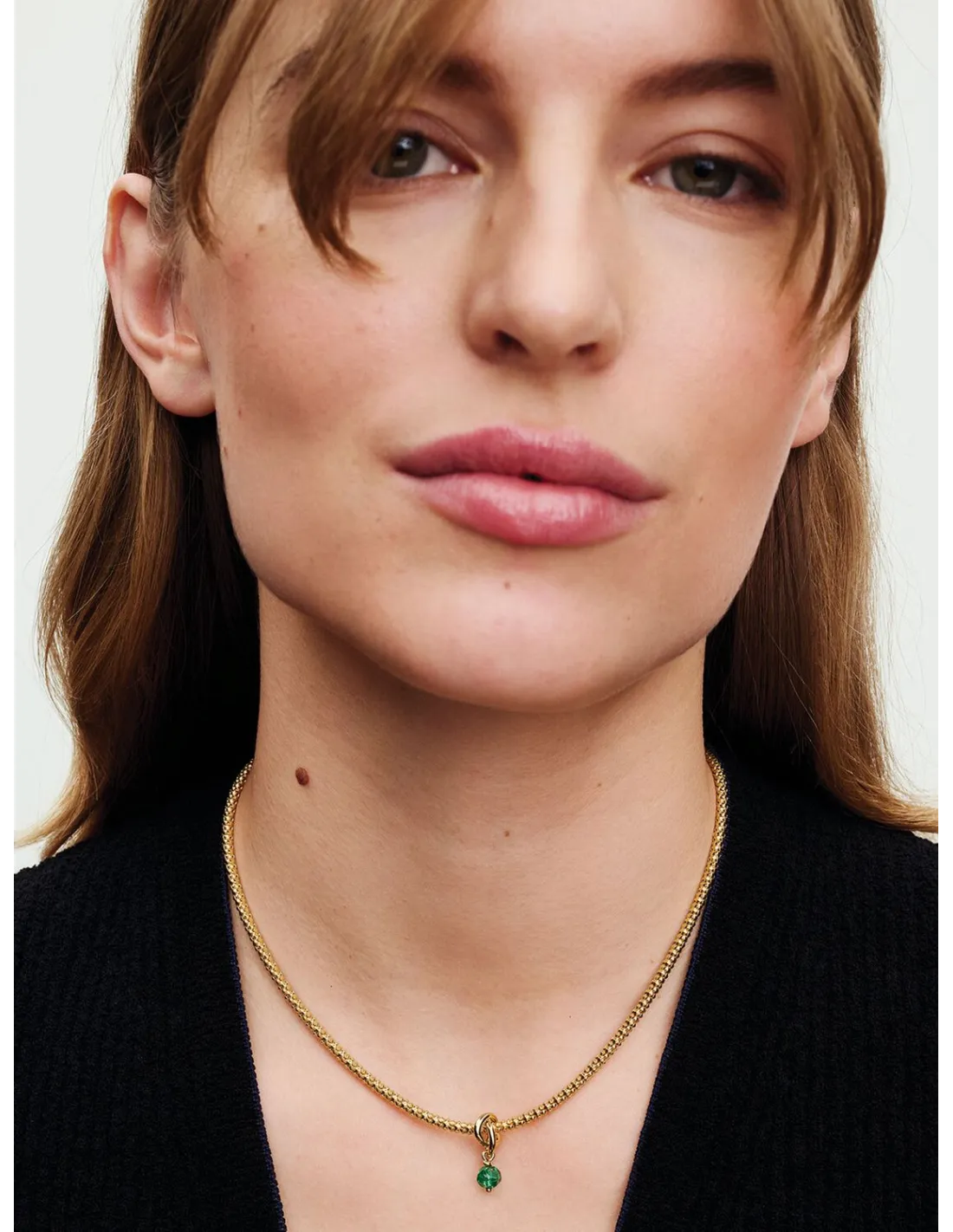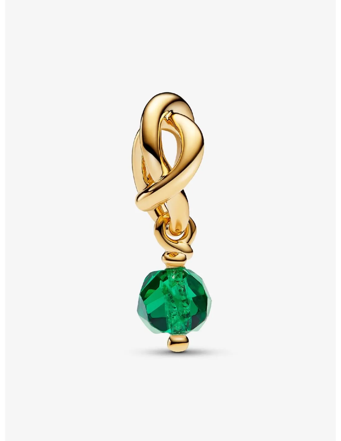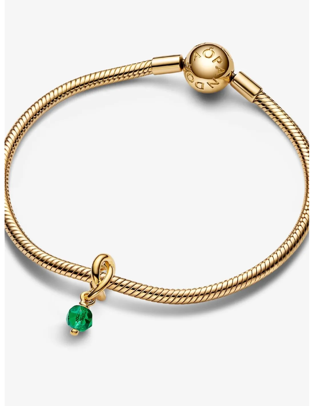Bær et symbol på evighed, der er personligt for dig. Dette charm med vedhæng er belagt med 14 kt. guld og består af en tredobbelt knude, der snor sig sammen som et uendelighedstegn. Knuden bærer en facetteret kongegrøn syntetisk krystal, der hænger fra charmet. Brug det for at give dit armbånd et strejf af farve, eller giv det i gave til en person, du ønsker i dit liv altid.