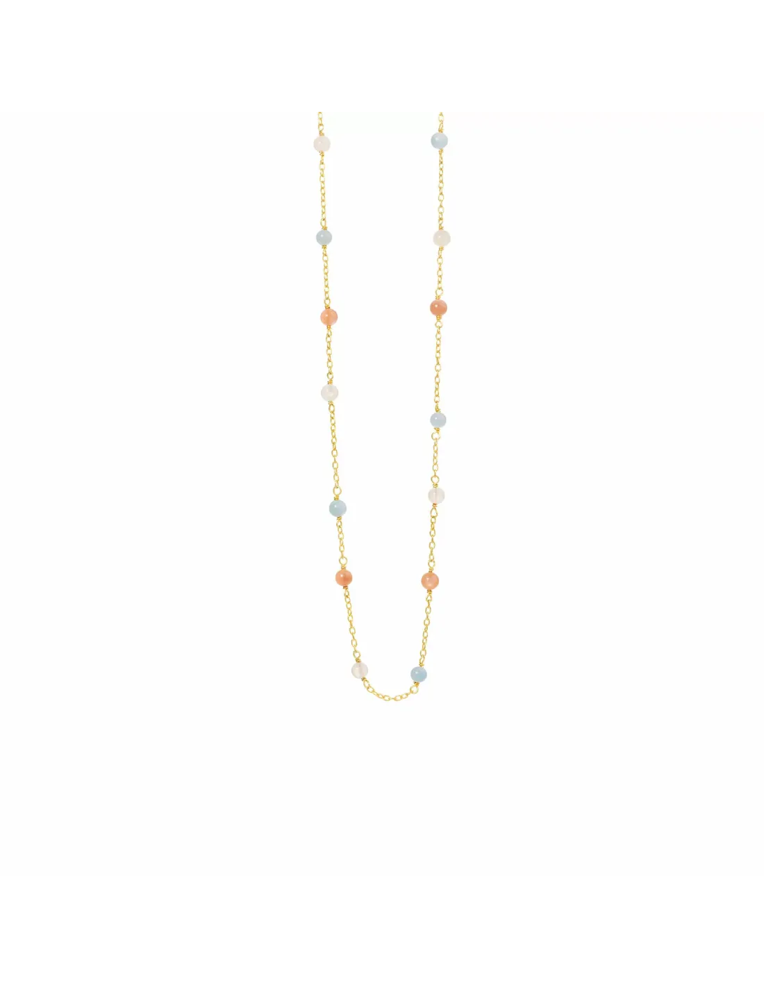 Halskæde anker 40-45 cm, forgyldt sølv, akvamarin, hvid månesten, ferskenfarvet månesten.