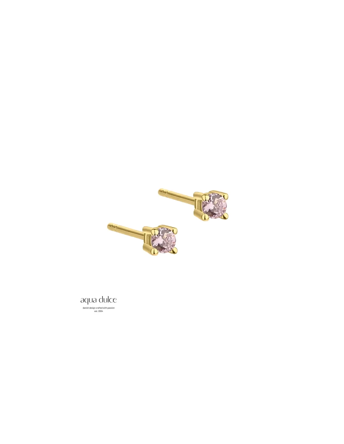 Disse ørestikker er oplagte til dig, der søger små forgyldte øreringe med rosa sten. Brug dem alene for et minimalistisk udtryk, eller kombinér dem med andre ørestikker i flere huller.