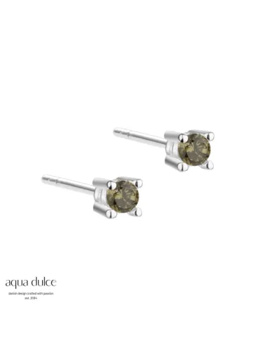 Disse små ørestikker fra Aqua Dulce kombinerer ægte sølv med en olivengrøn zirkonia, som giver et naturligt og afdæmpet farvespil. Perfekte til dig, der ønsker et neutralt smykke med farve, uden at det stjæler fokus.