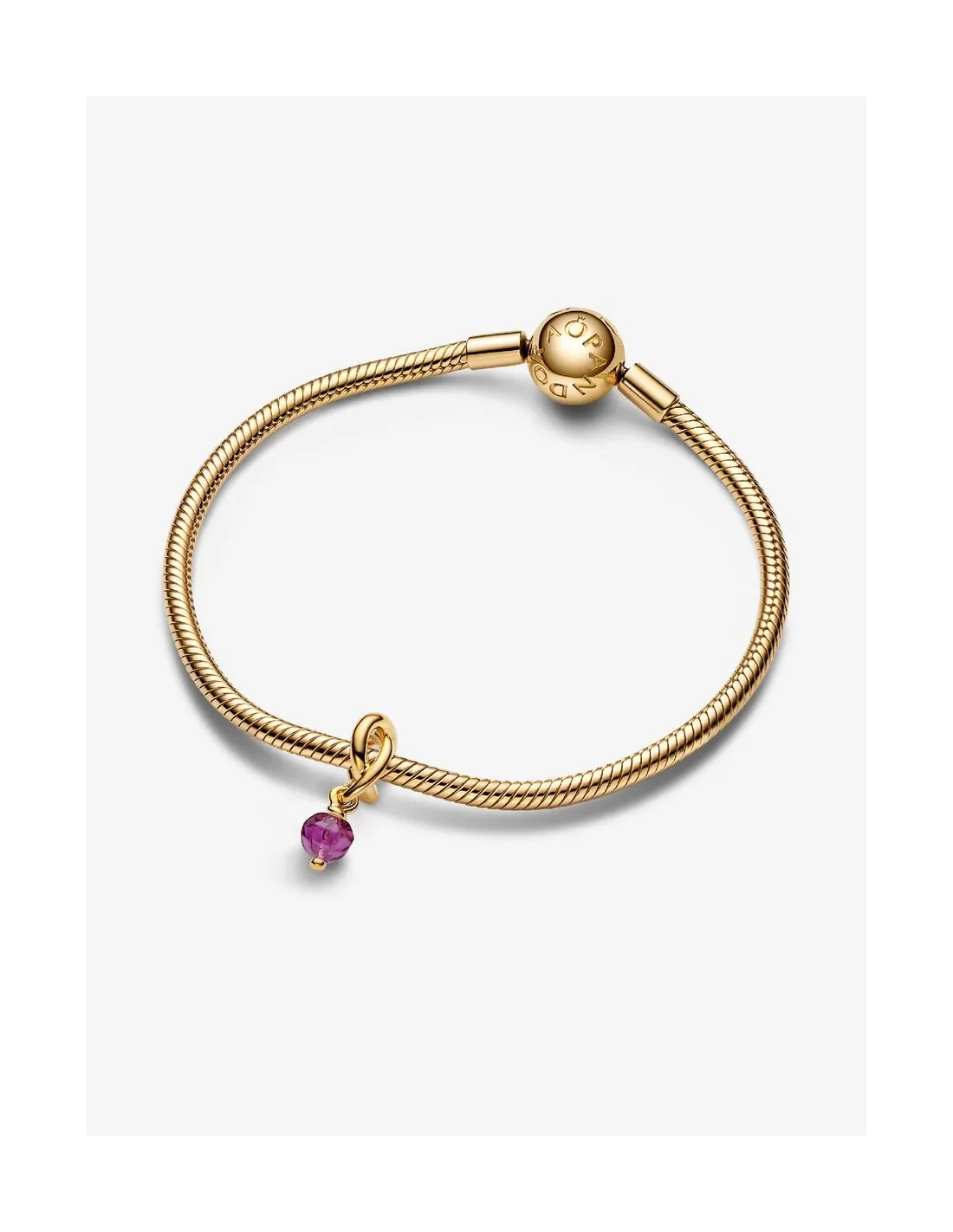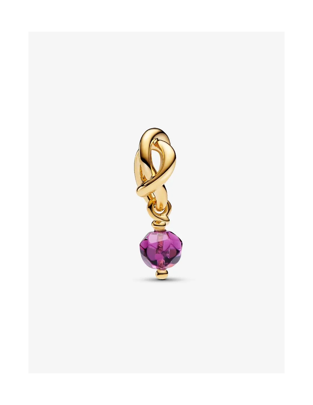 Bær et symbol på evighed, der er personligt for dig. Dette charm med vedhæng er belagt med 14 kt. guld og består af en tredobbelt knude, der snor sig sammen som et uendelighedstegn. Knuden bærer en facetteret vindruelilla syntetisk krystal, der hænger fra charmet. Brug det for at give dit armbånd et strejf af farve, eller giv det i gave til en person, du ønsker i dit liv altid.